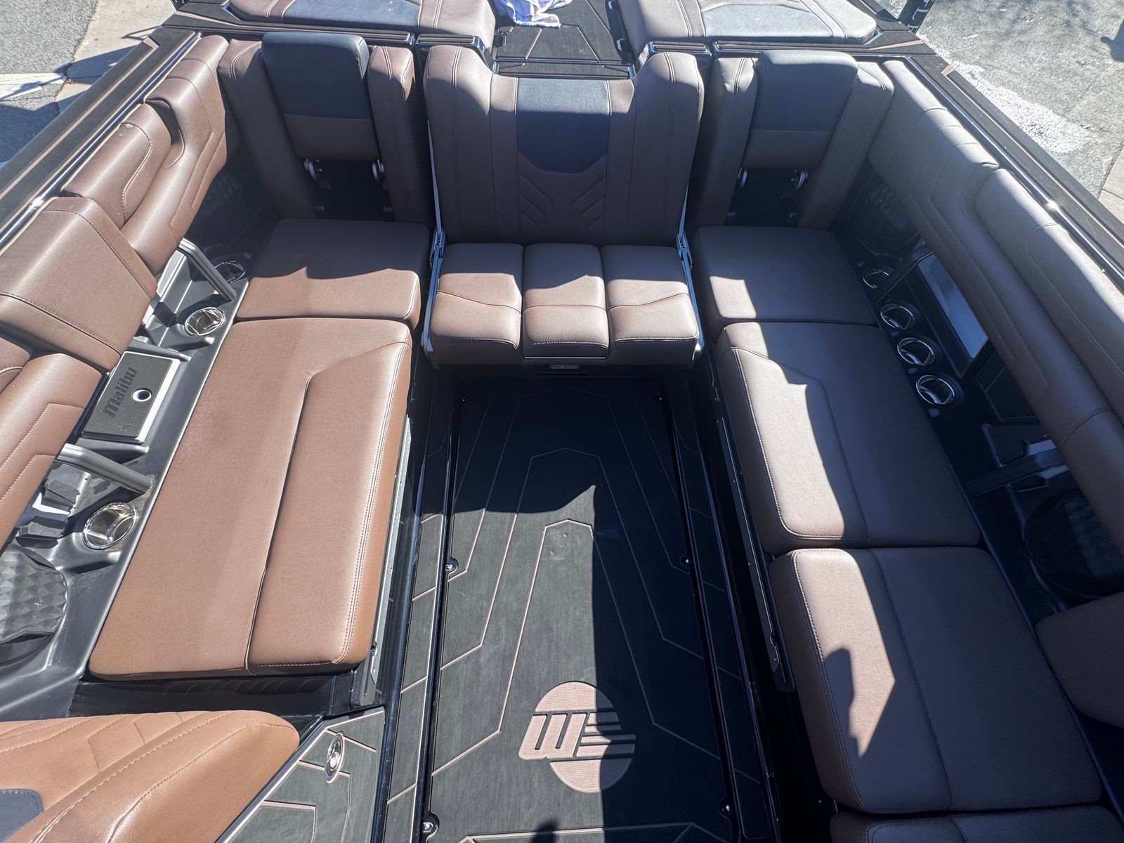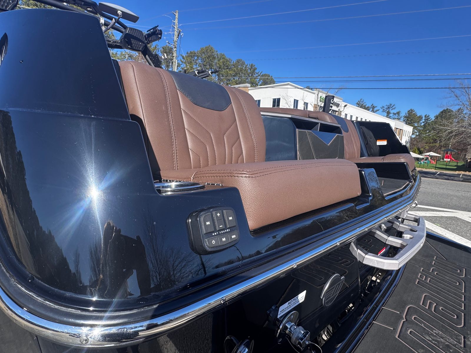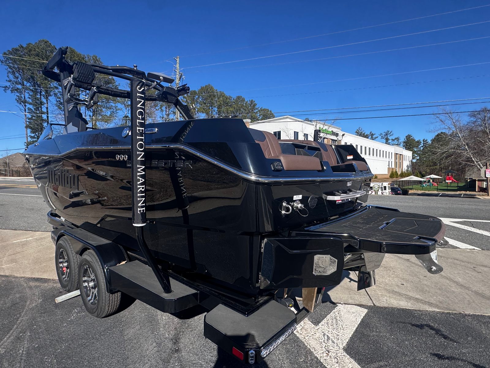 The Wakesetter 25 LSV is packed with special features that set it apart from other Ski & Wakeboard boats for sale. The exterior upgrade enhances its visual appeal and durability, while the stainless rubrail with through holes adds both style and protection. The Ballast HI FLO system, featuring rear eMLS4ffd and bow eMLS4, allows for precise wake shaping and optimal weight distribution, ensuring the perfect wave for every rider. The side pull surfing points on both port and starboard sides make it easy to switch up your surfing style and accommodate multiple riders.Sound suppression is taken to the next level with the MSST system, ensuring a quieter and more enjoyable ride. The 360 tower light provides excellent visibility and a striking look, while the ebony Malibu Ascend Tower adds a touch of sophistication and functionality. The Edition-Core package brings together the best of Malibu’s design and engineering, and the Silent Rider mufflers ensure that your time on the water is peaceful and enjoyable.