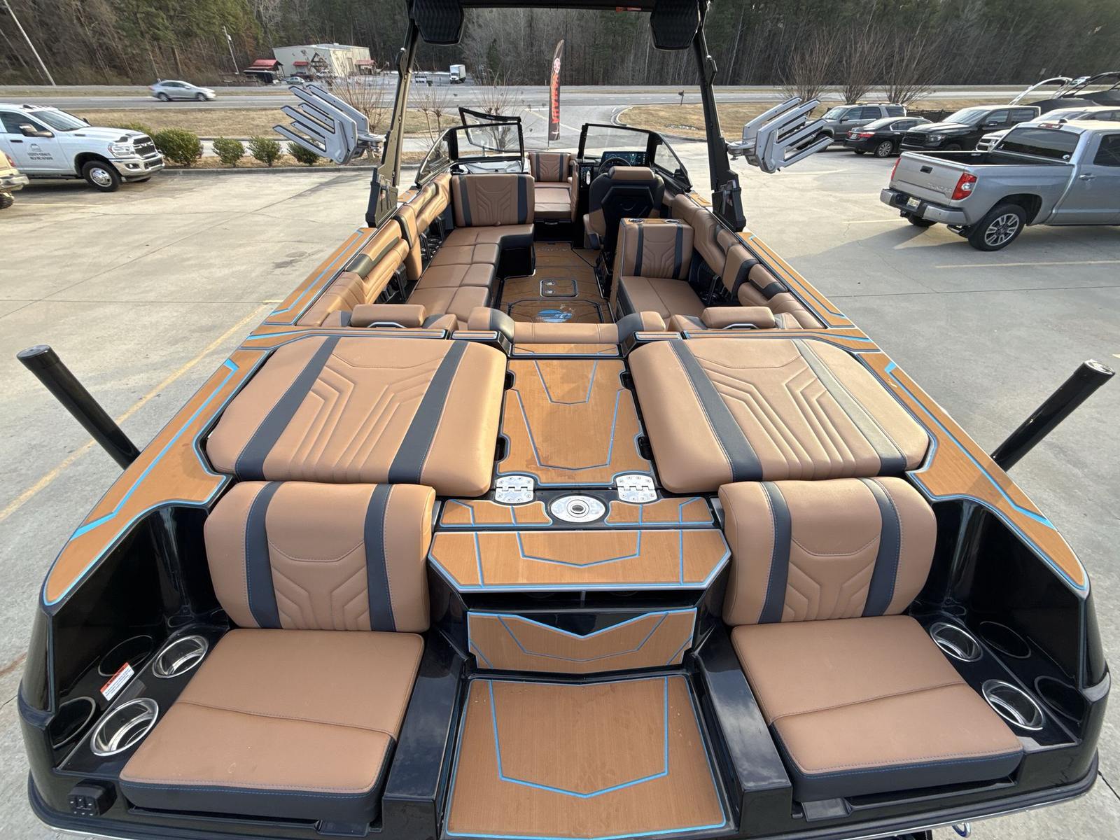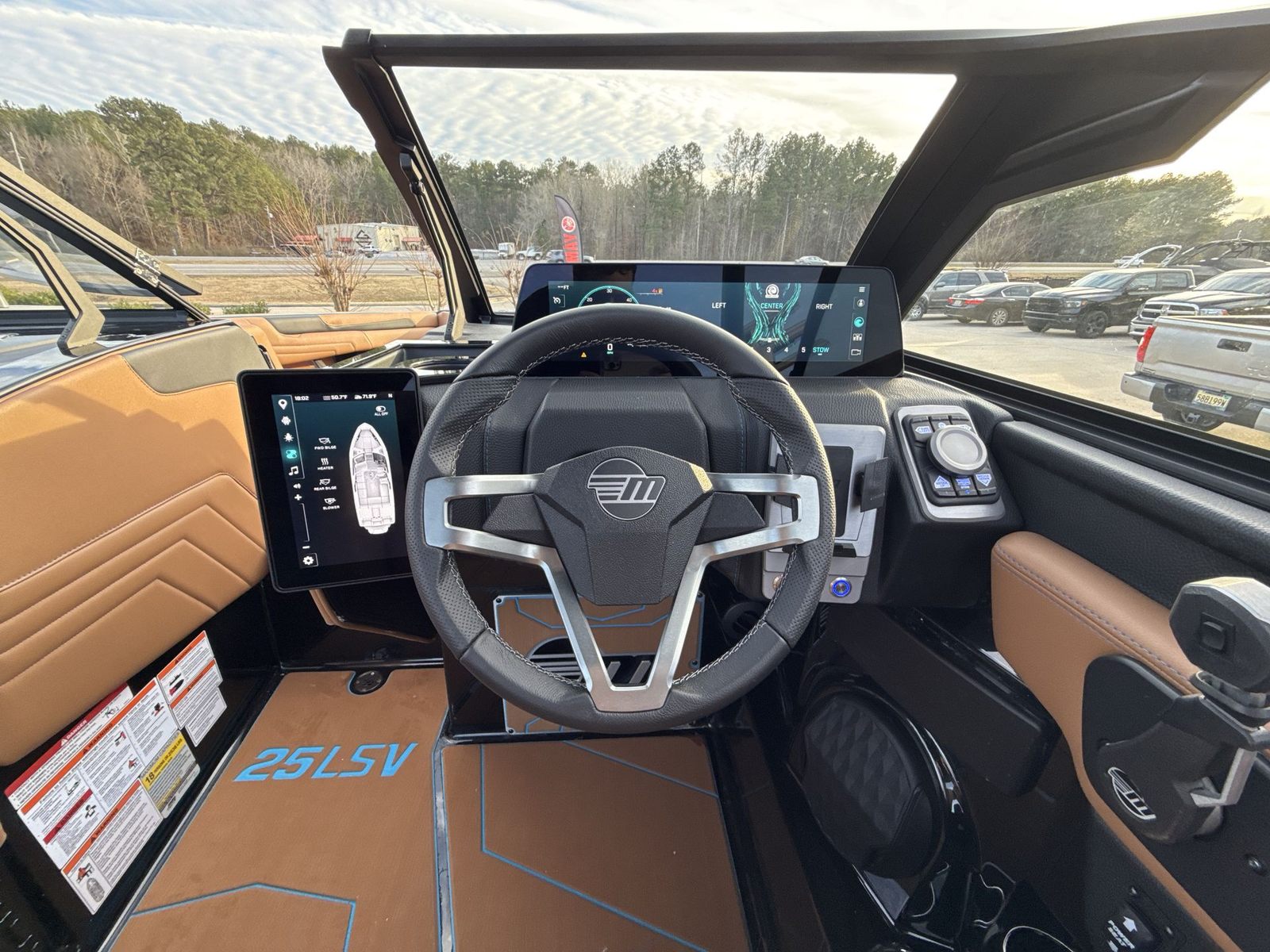 The 2025 Malibu Wakesetter 25 LSV stands out as a new, cutting-edge Ski & Wakeboard boat, measuring an impressive 25 feet in length. This spacious vessel is designed to accommodate your entire crew comfortably, making it perfect for both intimate gatherings and lively parties on the water. The sleek exterior, finished in striking Ebony and Vapor Blue Metallic, ensures you will turn heads at every marina and lakefront. Inside, the sophisticated color palette of Sepia Brown, Vapor Blue, Cool Sepia Brown, and Cool Ebony creates an inviting and upscale atmosphere, blending comfort with contemporary design.