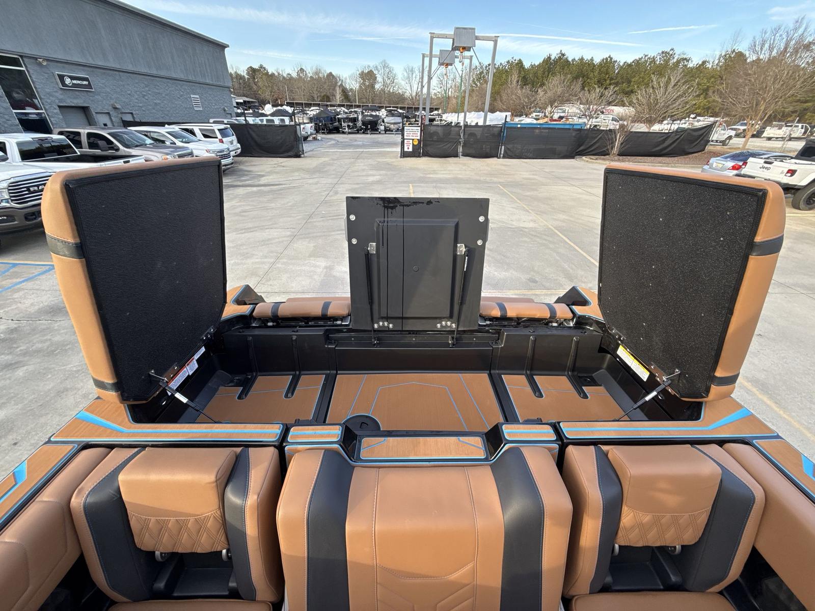 The Malibu Wakesetter 25 LSV is as practical as it is fun. The generous storage options, including surfboard storage integrated into the GL Flip Bimini, keep your gear organized and accessible. The boat’s length and design make docking straightforward, even for less experienced captains, while the durable hull and protective covers safeguard your investment year after year.Fuel efficiency is enhanced by the advanced Malibu Monsoon M6Di engine, allowing you to spend more time on the water and less time at the pump. The robust alternator ensures all your electronic devices and onboard systems remain powered, so you can focus on enjoying your day without interruption.