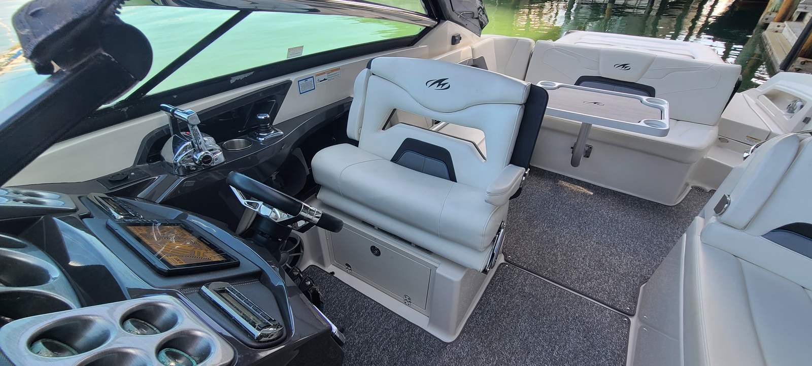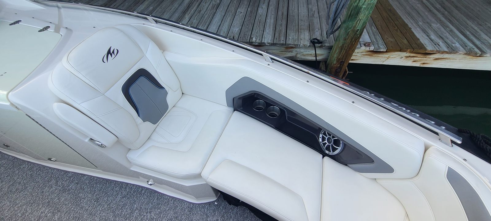 Practicality is a hallmark of the Monterey 328SS. The thoughtful storage options allow you to keep the deck clutter-free, making it easy to move around and enjoy every inch of space. Docking is a breeze thanks to the responsive handling and dual engines, giving you confidence in tight marinas or busy docks. The efficient design helps maximize fuel economy, so you can spend more time on the water and less time refueling.The durable construction and quality materials ensure that this bowrider boat for sale is built to last, providing peace of mind for years to come. Whether you are planning a weekend getaway, a day trip with friends, or a spontaneous adventure, the 328SS is ready to deliver a memorable experience every time.