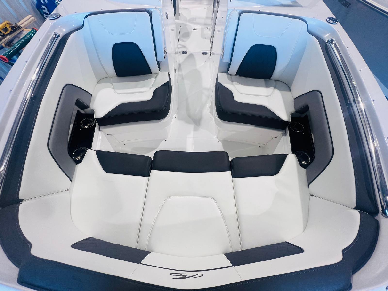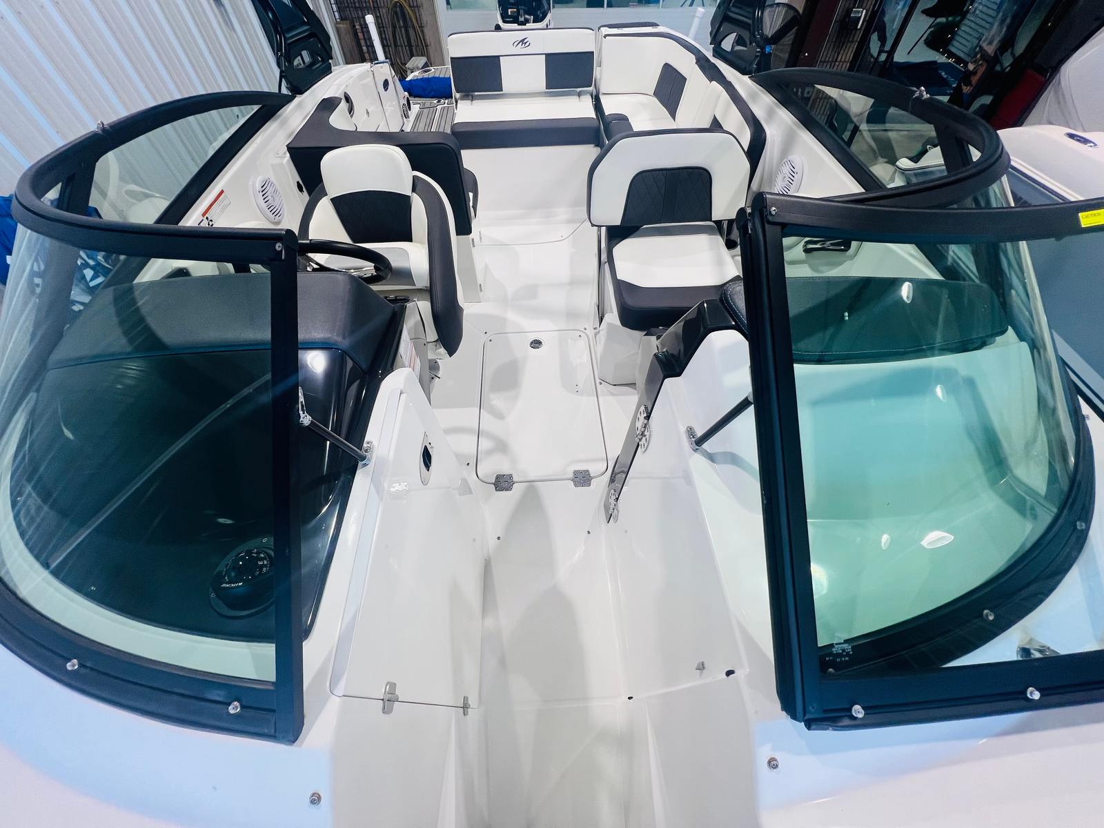 The Monterey M-65 Bowrider is designed to maximize comfort, convenience, and enjoyment on the water. Its spacious layout offers ample seating for family and friends, making it perfect for entertaining or relaxing in style. The open bow area provides plenty of room to stretch out and soak up the sun, while the thoughtfully arranged cockpit ensures everyone has a comfortable spot to enjoy the ride. Premium materials and finishes throughout the boat create a luxurious atmosphere, and the ergonomic helm station puts all controls within easy reach for the captain.With a length of just over 29 feet, the M-65 offers generous storage options for all your gear, water toys, and essentials. The smart use of space means you can bring everything you need for a day on the water without feeling cramped or cluttered. The boat’s design also makes it easy to access the water for swimming, snorkeling, or boarding watercraft, adding to its versatility and appeal.