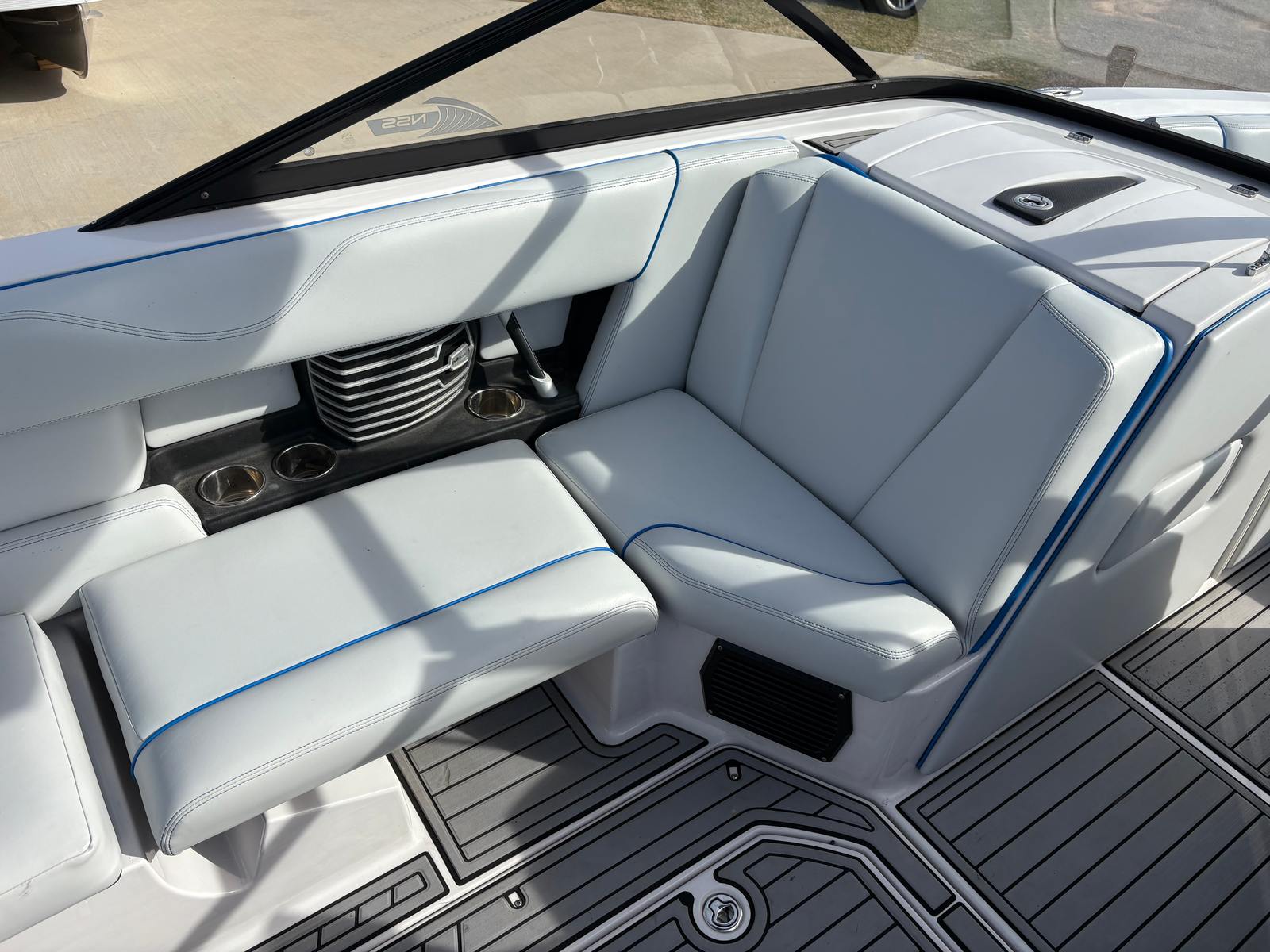 The 2014 Nautique Super Air Nautique G23 is packed with features that enhance your time on the water. Its spacious 23-foot layout offers plenty of room for passengers to relax and enjoy the ride. The boat’s ergonomic seating ensures comfort during long days on the lake, while the intuitive helm puts all controls within easy reach of the captain. The advanced ballast system allows you to fine-tune the wake for different skill levels and activities, making it easy to switch between wakeboarding, wakesurfing, and skiing. With only 101 engine hours, this used Nautique boat for sale is in excellent condition and ready for immediate enjoyment.