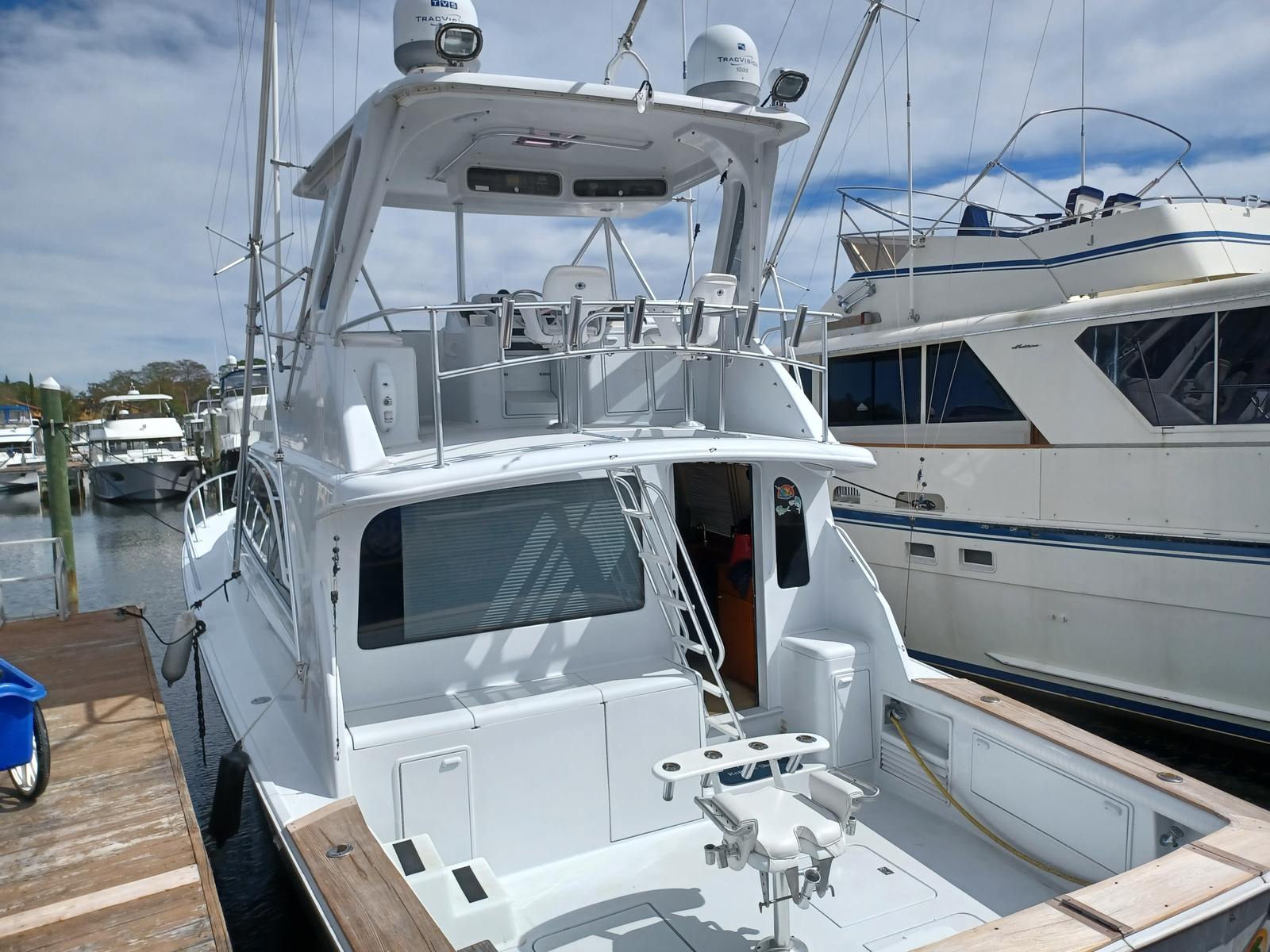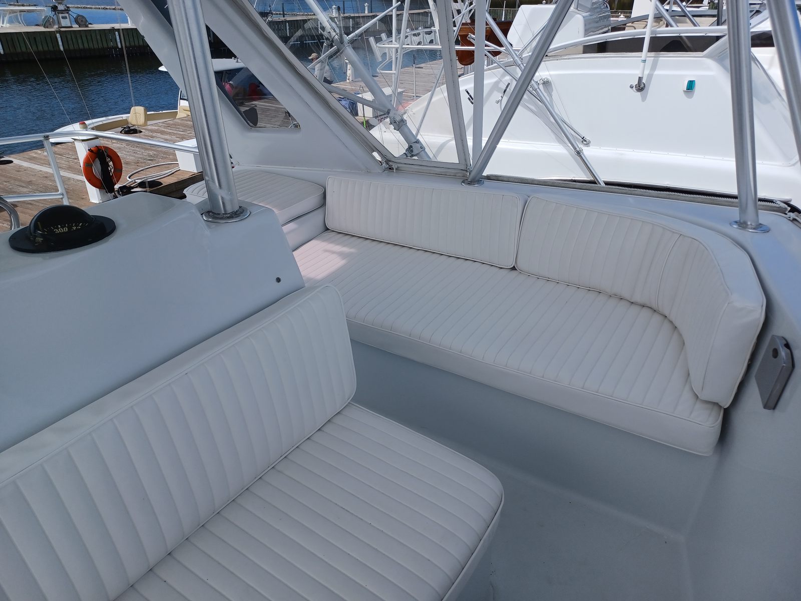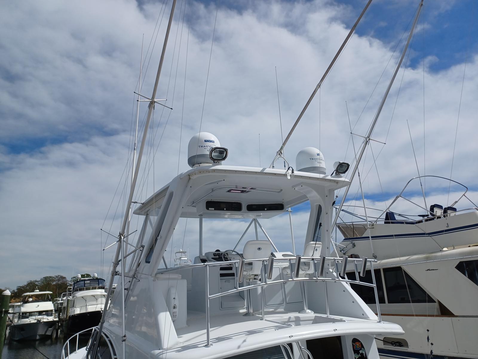The Ocean Yachts 48 Super Sport is as practical as it is enjoyable. Its thoughtful design includes ample storage for fishing gear, coolers, and personal belongings, ensuring everything you need is always within reach. The twin engines not only provide impressive speed but also contribute to easier docking and maneuvering in tight spaces. Fuel efficiency is another key advantage, allowing you to spend more time on the water and less time at the fuel dock. The boat’s durable construction and reliable performance make it a smart investment for anyone seeking a used offshore fishing boat that delivers both excitement and peace of mind.