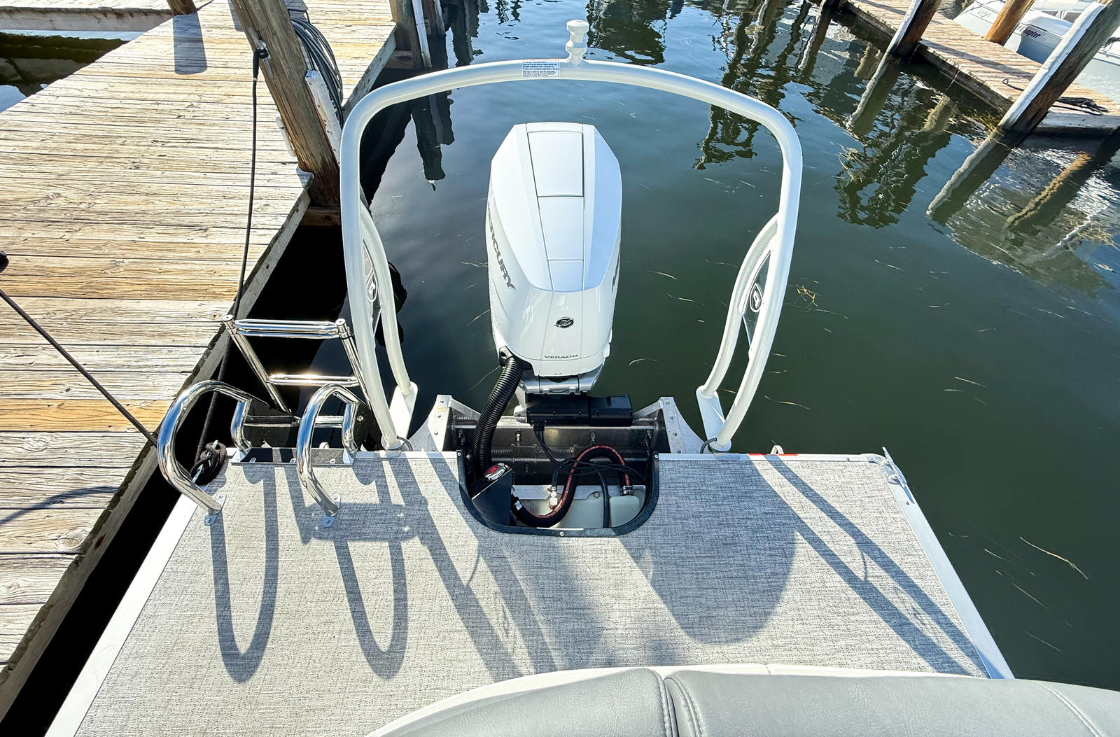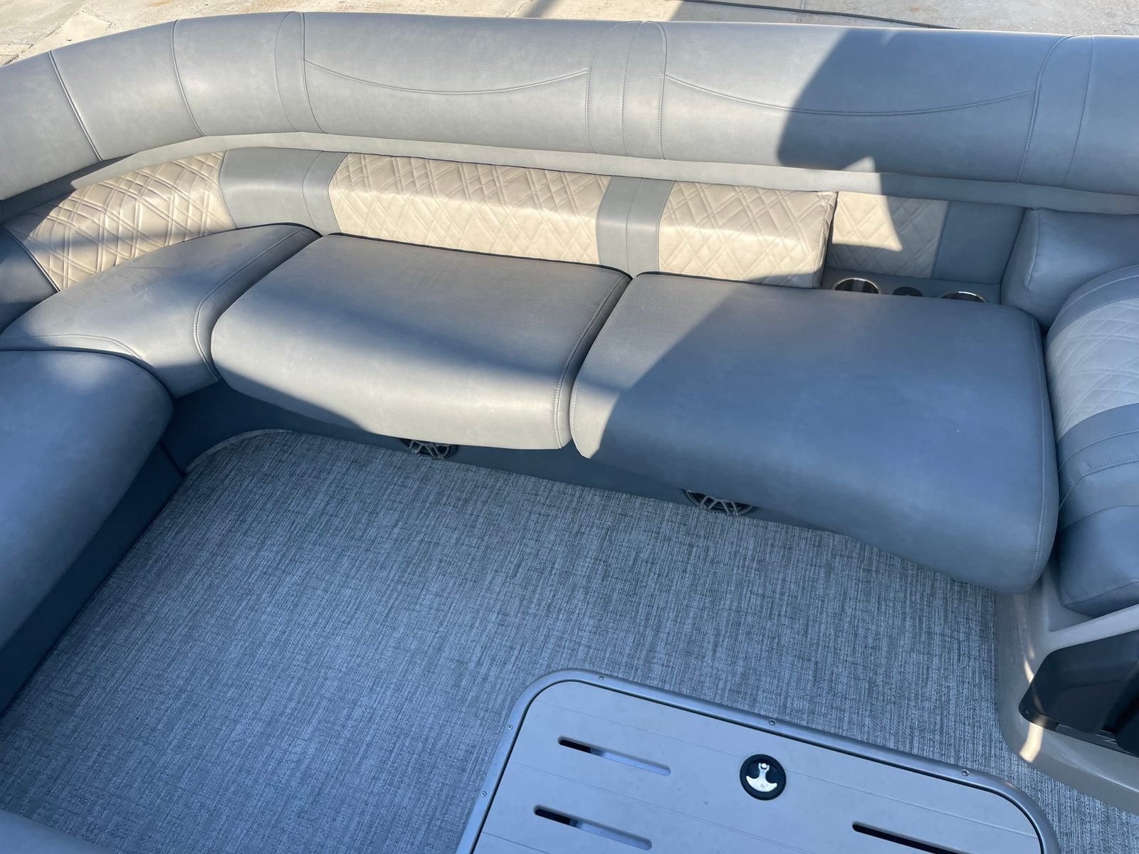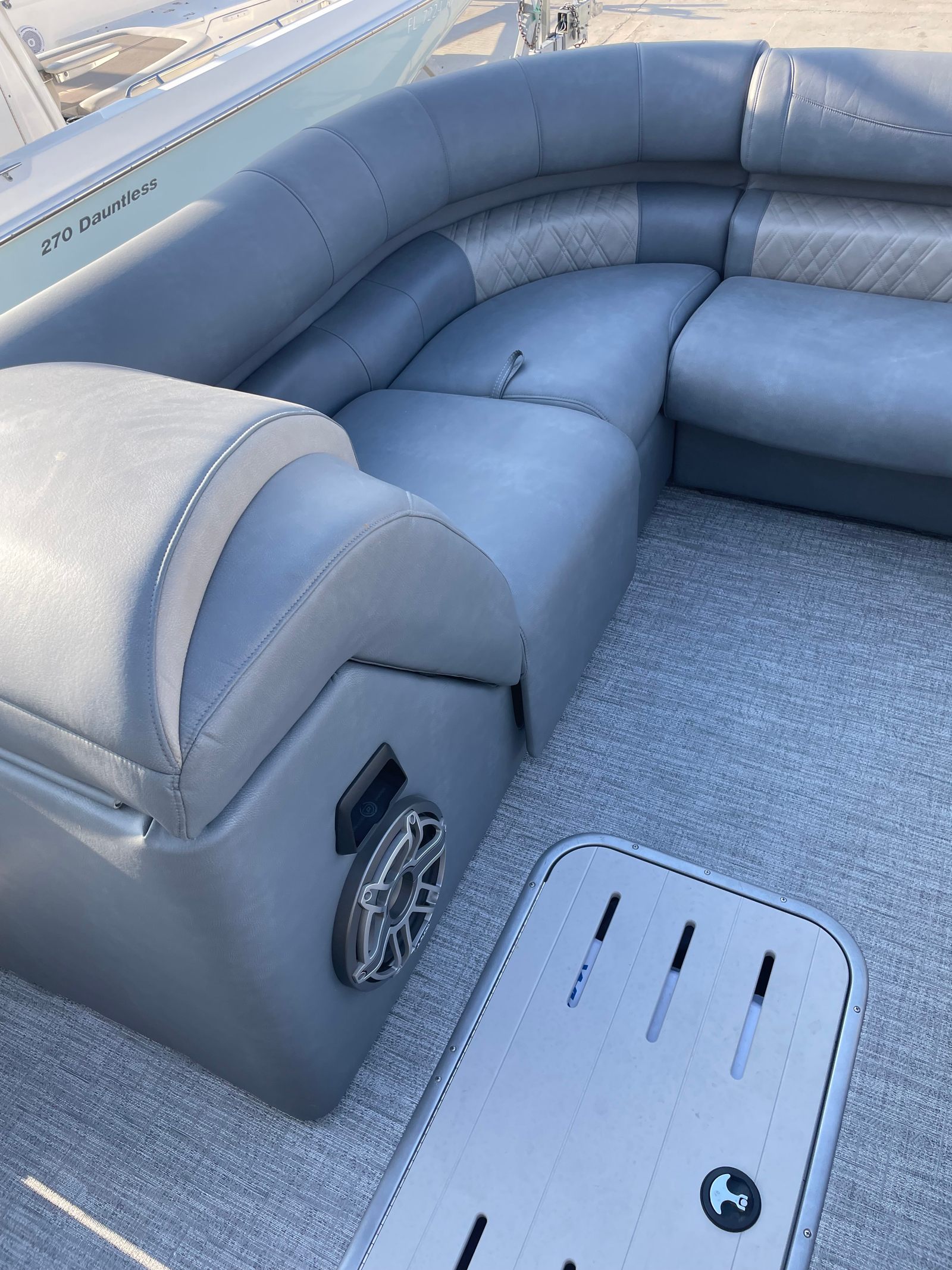 The Premier 270 Intrigue is loaded with features designed to enhance comfort, convenience, and enjoyment. Its expansive 27.5-foot deck provides ample space for guests to relax, socialize, and soak up the sun. Plush seating invites you to unwind, while the thoughtful layout ensures easy movement throughout the boat. The pontoon’s design maximizes usable space, making it perfect for hosting gatherings, enjoying meals, or simply lounging in style.Special features of this model include its impressive engine with 400 horsepower, which sets it apart from other pontoon boats for sale. The low engine hours further add to its appeal, offering peace of mind and reliability for future adventures. The Premier 270 Intrigue’s build quality and attention to detail are evident in every aspect, from the sturdy construction to the elegant finishes that define its luxury character.