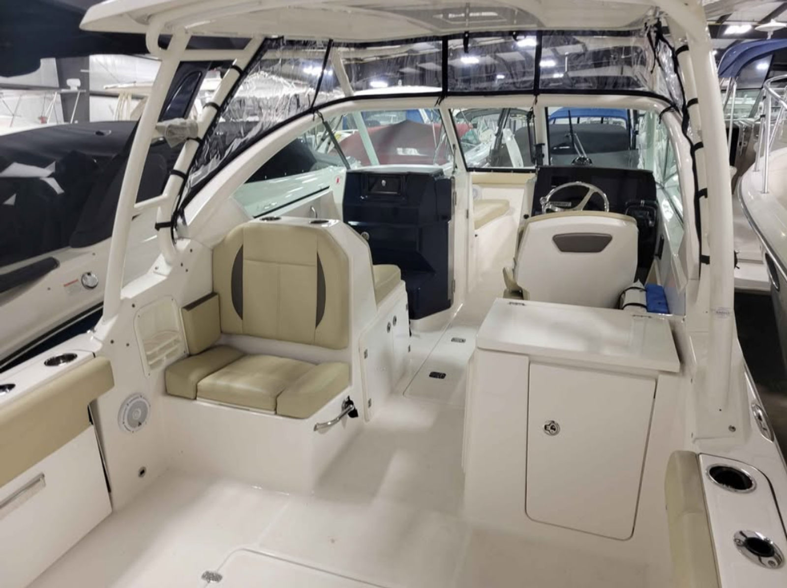 The Pursuit 266 DC is as practical as it is fun. The dual console layout makes it easy to move around the boat, access storage areas, and dock with confidence. The generous storage options allow you to bring along fishing gear, water toys, and picnic supplies without sacrificing comfort or space. The boat’s manageable size and responsive handling make it a breeze to dock, trailer, and maintain, giving you more time to enjoy the water and less time worrying about logistics.Fuel efficiency is another advantage of the Pursuit 266 DC. The twin-engine setup is designed to deliver impressive performance without excessive fuel consumption, making it a smart choice for boaters who want to maximize their time on the water without breaking the bank. Whether you’re planning short day trips or longer excursions, this dual console boat for sale offers the range and reliability you need.