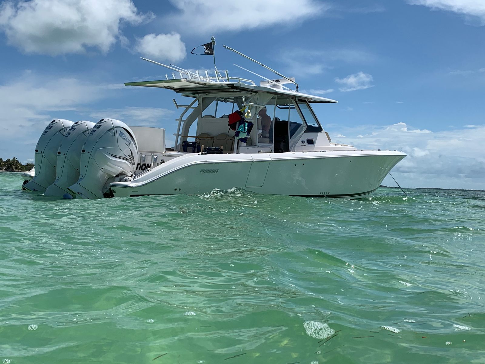 One owner gem! Bought new here at Legendary Marine and serviced here exclusively! Always lift kept this beautiful white hull S 408 is detailed every 2 weeks and waxed every 3 months! She is beautiful with her Triple Yamaha XF 425's in Pearlescent White with less than 325hrs! Loaded with options this one is priced to sell!