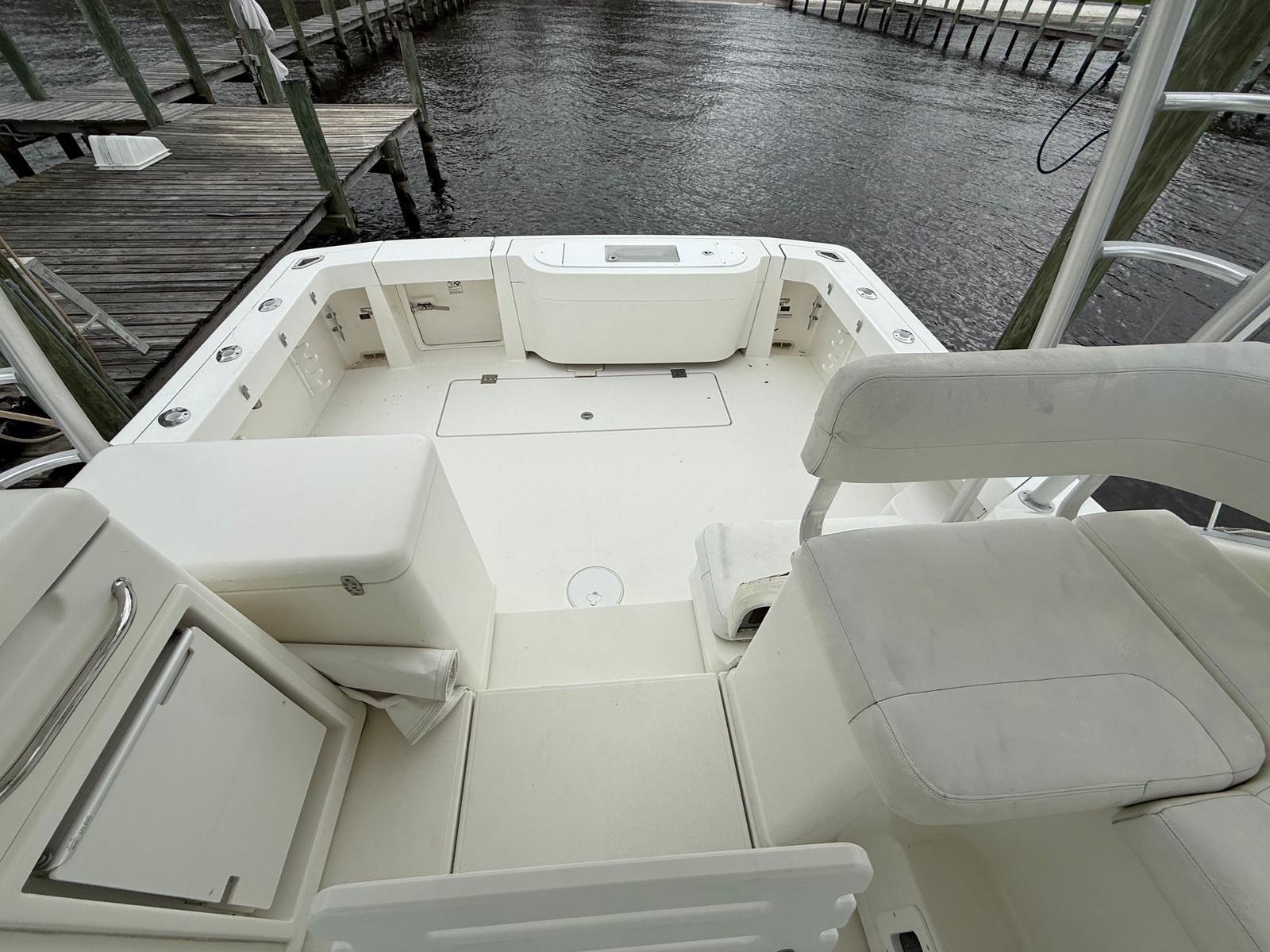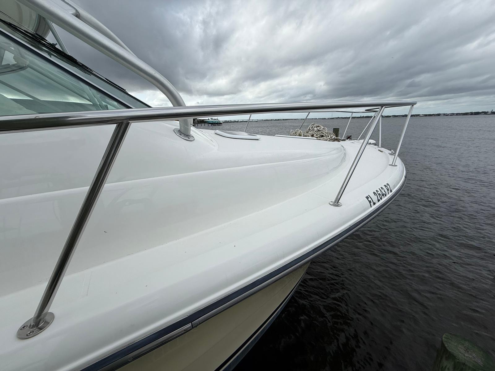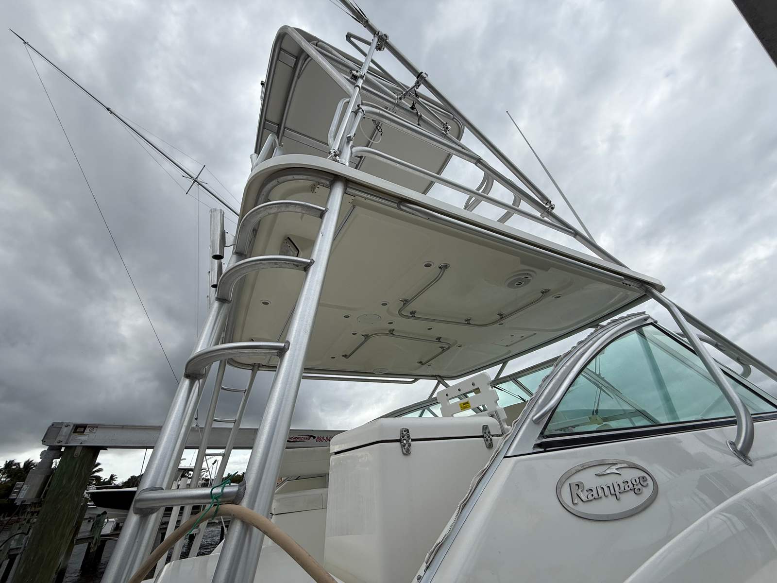 The Rampage 33 Express is powered by two robust engines, delivering a combined horsepower of 910. With only 595 engine hours, these engines are ready to provide many more years of reliable service. This impressive power ensures smooth cruising, quick acceleration, and the ability to handle a variety of water conditions with ease. Whether you’re navigating coastal waters or heading offshore, the Rampage 33 Express offers the kind of performance that makes every journey enjoyable. The twin-engine setup also enhances maneuverability, making docking and tight turns effortless, even for those new to handling a yacht of this size.
