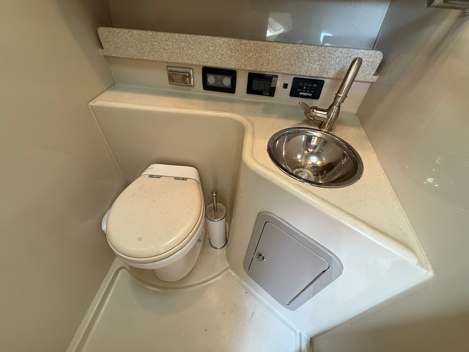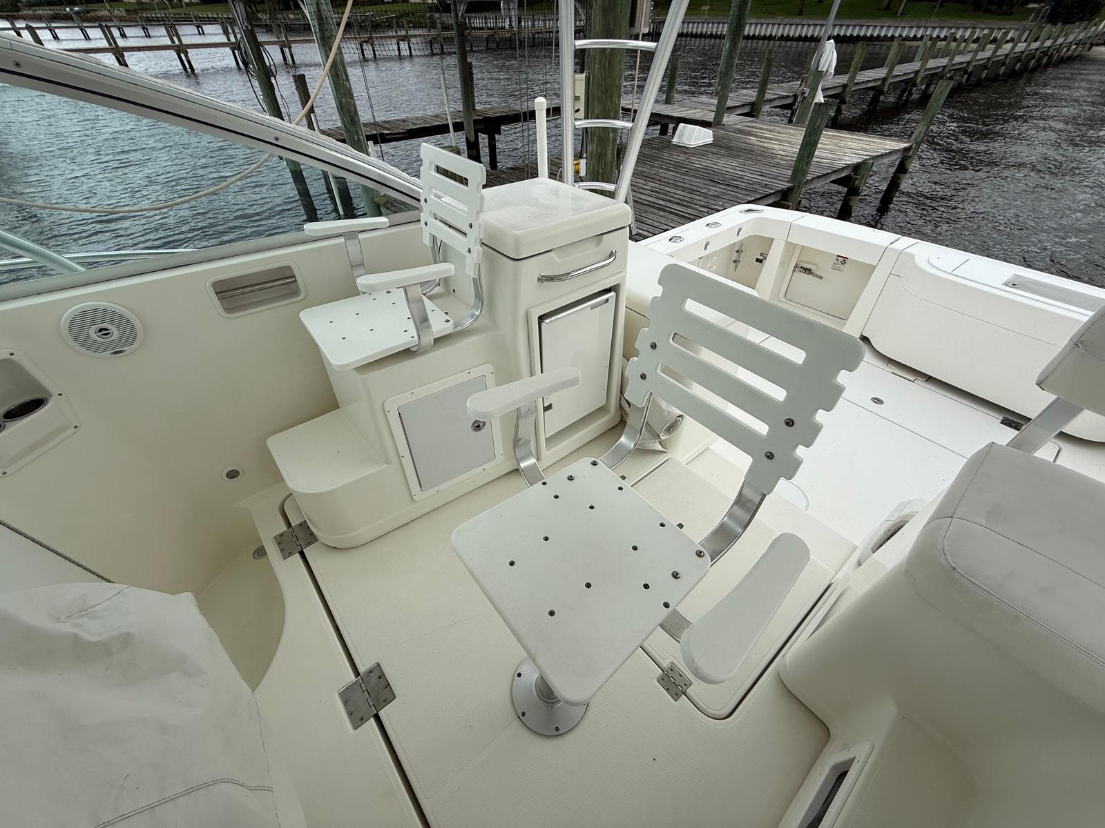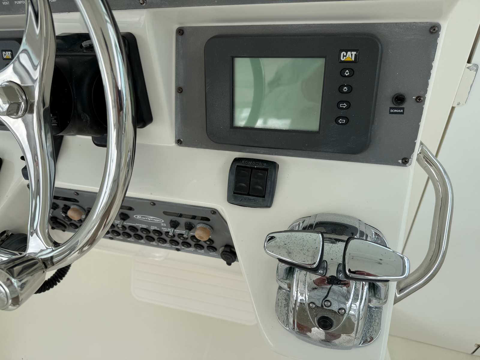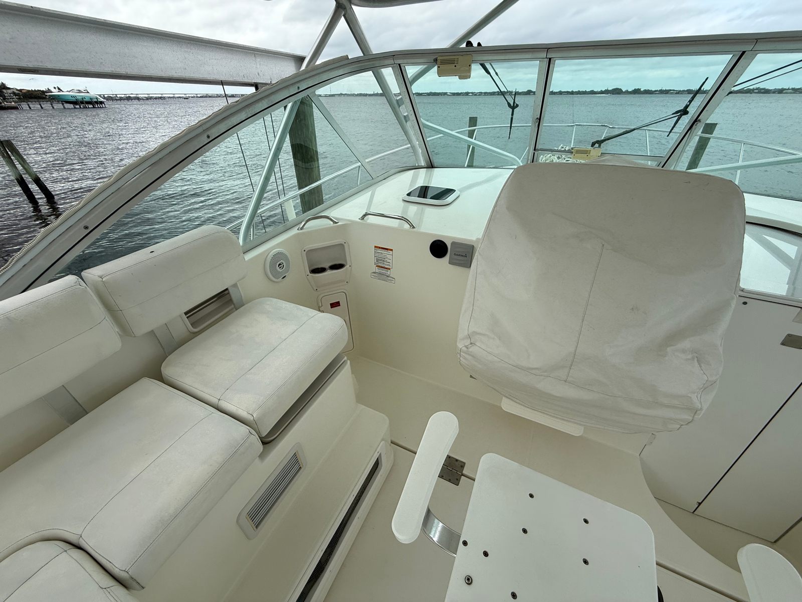 The Rampage 33 Express is powered by two robust engines, delivering a combined horsepower of 910. With only 595 engine hours, these engines are ready to provide many more years of reliable service. This impressive power ensures smooth cruising, quick acceleration, and the ability to handle a variety of water conditions with ease. Whether you’re navigating coastal waters or heading offshore, the Rampage 33 Express offers the kind of performance that makes every journey enjoyable. The twin-engine setup also enhances maneuverability, making docking and tight turns effortless, even for those new to handling a yacht of this size.