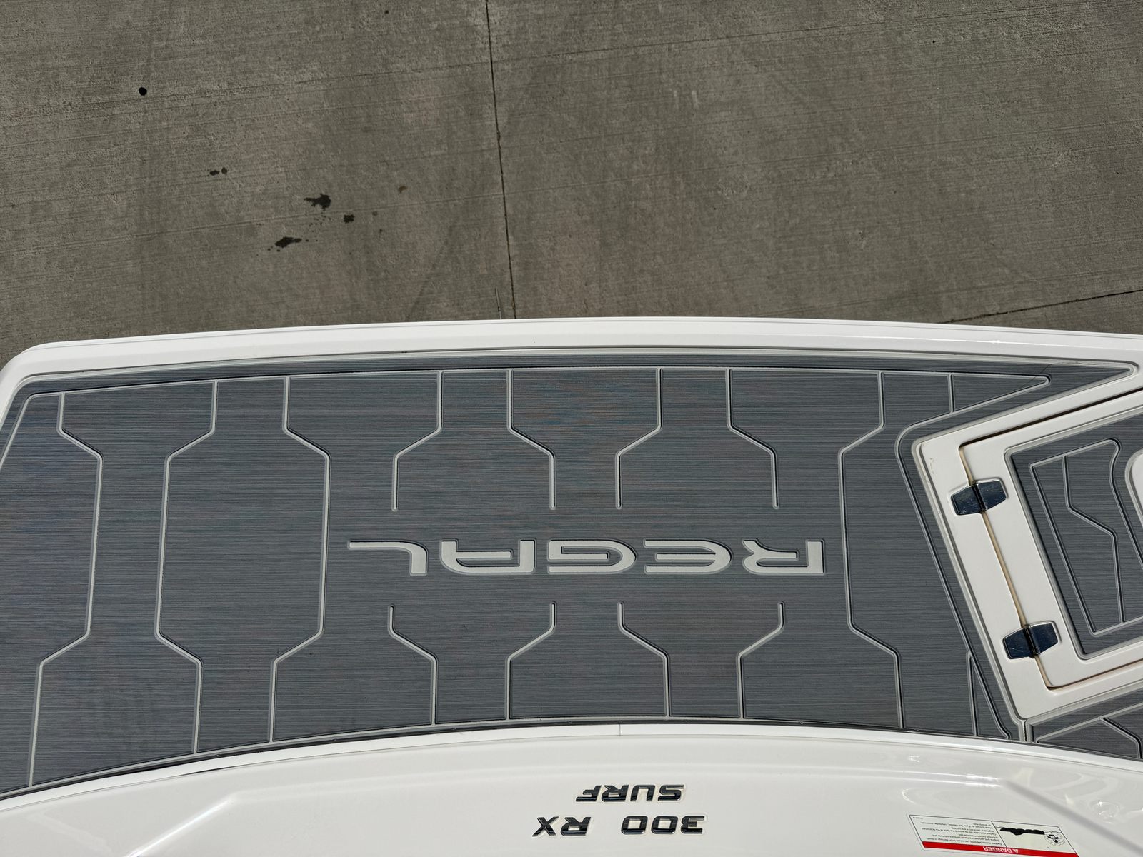 The Regal 2300 RX Surf is packed with features designed to enhance your boating experience. Its spacious bow seating area invites guests to relax and soak up the sun, while the open cockpit layout ensures everyone has a comfortable spot to enjoy the ride. The boat’s innovative hull design contributes to a smooth, dry ride, even when the water gets choppy. The 24-foot length provides generous storage options for gear, water toys, and personal items, keeping the deck clutter-free and organized.This model is also equipped with surf-specific technology, allowing you to create the perfect wake for surfing or wakeboarding. The intuitive controls make it easy to customize the wave, ensuring every rider can enjoy their ideal experience. The attention to detail in the design and construction of the 2300 RX Surf is evident in every aspect, from the premium upholstery to the ergonomic helm station.