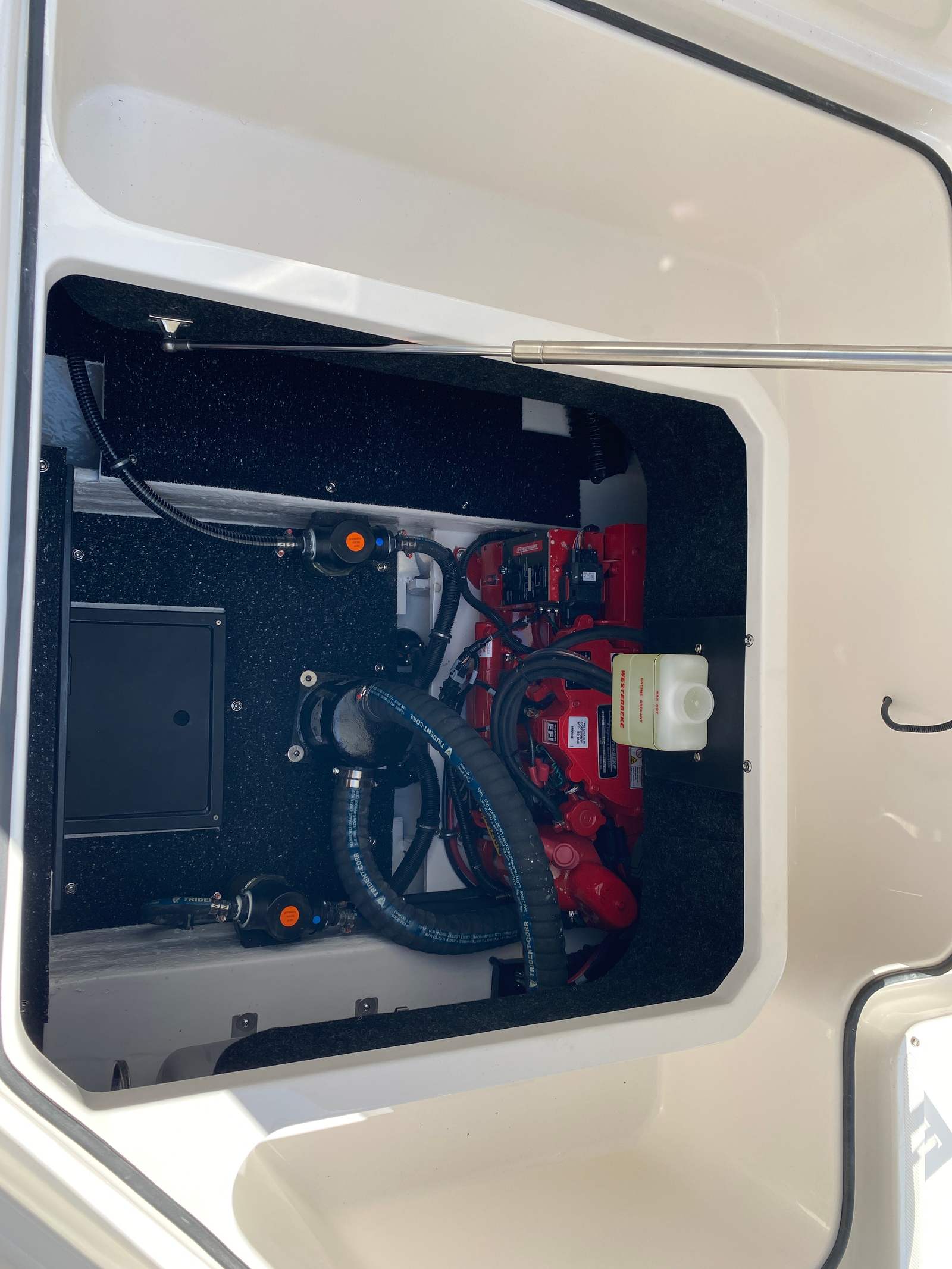 The Regal 26 XO is designed with practicality in mind, making ownership both enjoyable and hassle-free. The generous length of 27.25 feet provides ample storage space for all your gear, from water toys to picnic supplies. The efficient Yamaha F350XSA2 engine helps you make the most of your time on the water, offering a balance of power and fuel economy.Docking and maneuvering are made easier thanks to the boat’s responsive handling and well-thought-out design. The cockpit seagrass mat not only adds comfort but also makes cleaning up after a day on the water a breeze. With the gas 110V generator, you can enjoy the convenience of onboard power for your electronics and appliances, making overnight stays more comfortable and enjoyable.