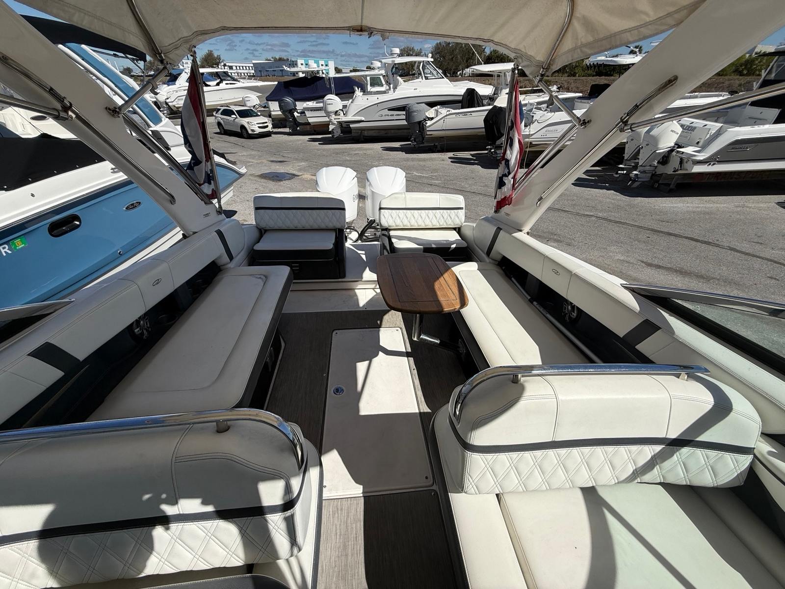 This Bowrider boat for sale is designed with practical features that make ownership easy and enjoyable. The ample storage space allows you to stow gear, water toys, and personal items, keeping the deck clutter-free. The twin-engine setup not only provides impressive power but also simplifies docking and maneuvering, making it easier to handle in tight spaces. Regal’s efficient hull design helps optimize fuel consumption, so you can spend more time on the water and less time refueling. The boat’s length and layout make it easy to board and disembark, enhancing convenience for all passengers.