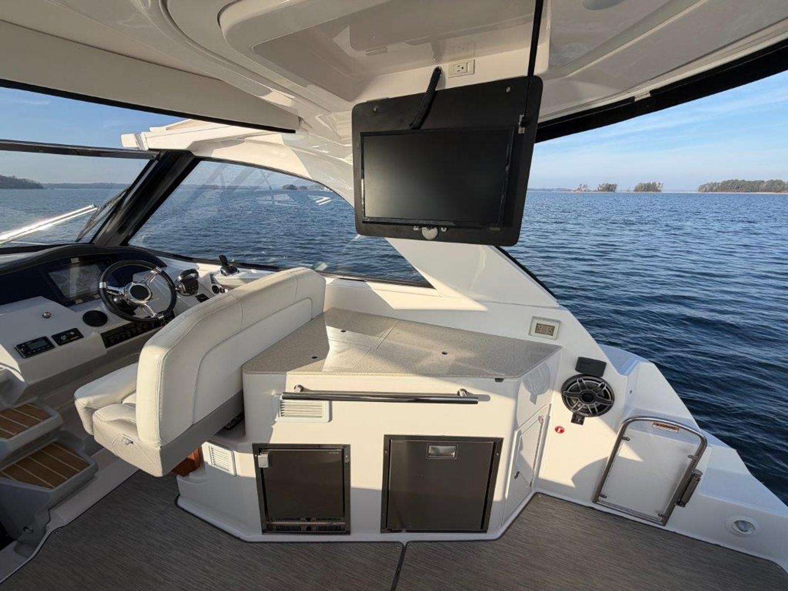 • Cockpit icemaker, fridge, grill, air conditioning with reverse-cycle heat, cockpit TV