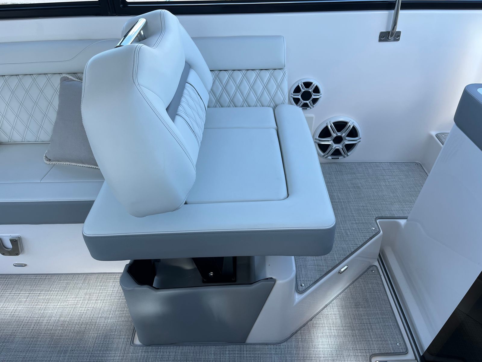 The 2026 Regal 36 XO is a yacht that commands attention with its impressive length of 37.25 feet. Crafted for those who appreciate both aesthetics and functionality, this vessel showcases Regal’s commitment to quality and innovation. The exterior is a visual masterpiece, featuring a hull color in Steel Gray, complemented by a Mediterranean Blue bootstripe and a Tahiti Beach White bottom. The yacht’s Titanium interior exudes sophistication, creating a welcoming and luxurious atmosphere for you and your guests. With its new condition, this yacht promises pristine quality and the latest advancements in marine design.