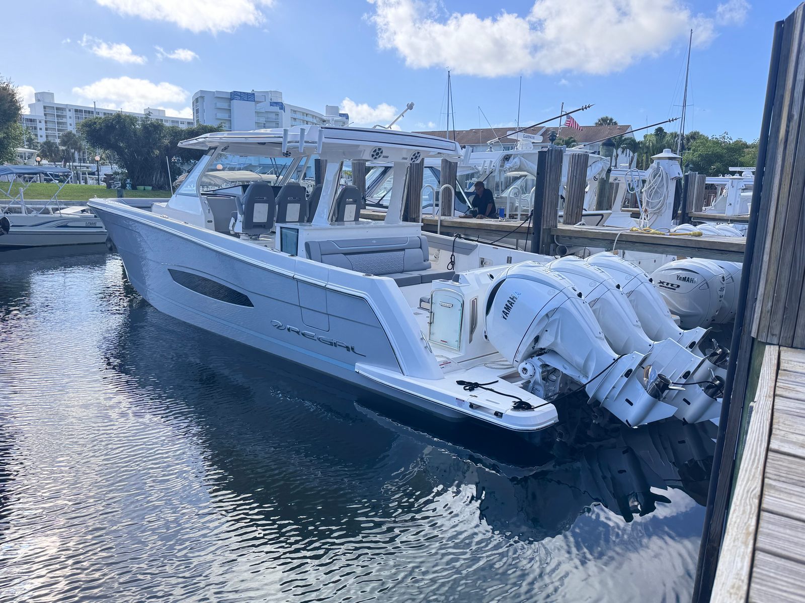 In summary, the 2026 Regal 38 SAV is a new yacht boat for sale that combines cutting-edge performance, luxurious features, and practical design in one exceptional package. With its triple Yamaha 350HP engines with integrated steering, PowerShade, manual Bow Sunshade System, elegant white canvas covers, teak steps, Snowcap Coastal package, Mosaic countertops, and Toasted Oak salon floor, this yacht stands out as a premier choice for discerning buyers.If you are searching for a Regal boat for sale that delivers excitement, comfort, and versatility, the 38 SAV is ready to exceed your expectations. Experience the thrill of owning a world-class yacht and create lasting memories on the water. Contact your local dealer today to learn more about the Regal 38 SAV and to schedule a private viewing.