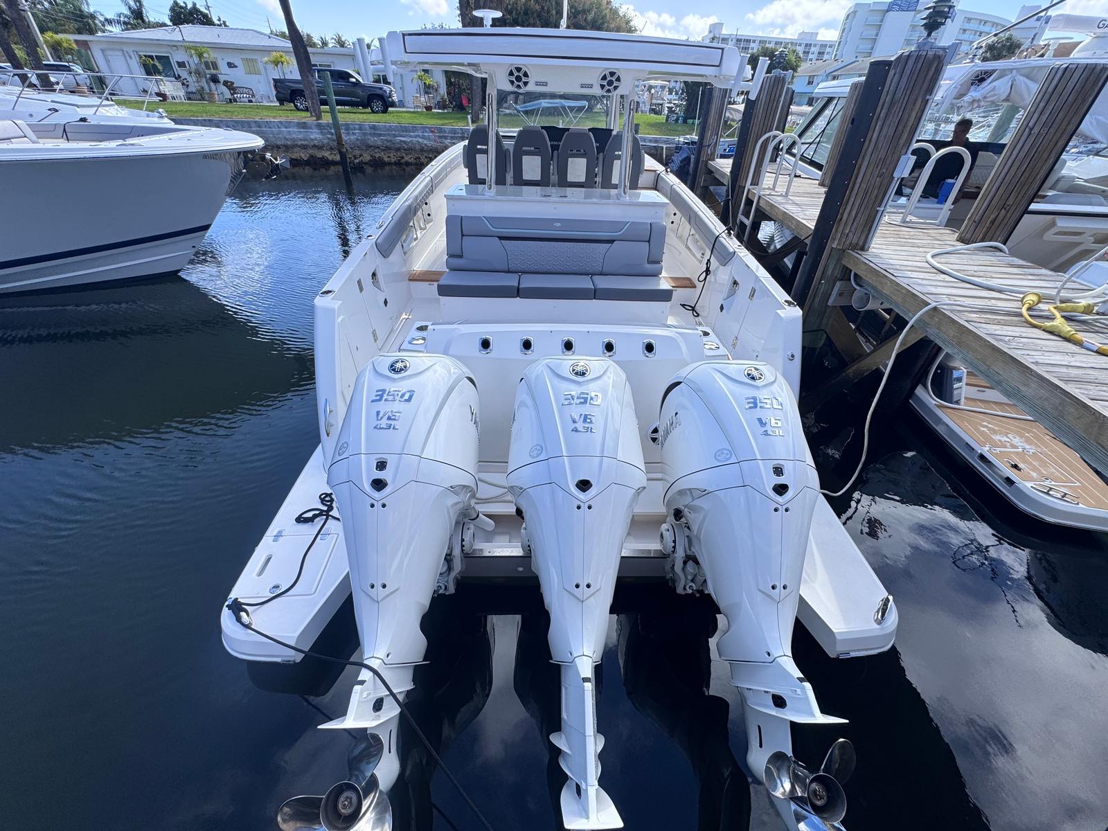 At the heart of the Regal 38 SAV lies an extraordinary propulsion system featuring triple Yamaha 350HP engines with integrated steering, finished in a striking white. This powerful trio delivers a combined 1,050 horsepower, ensuring exhilarating speed, responsive handling, and smooth cruising across open waters. The integrated steering system provides precise control, making docking and maneuvering effortless, even in tight spaces. Whether you are navigating coastal waters or embarking on longer voyages, the 38 SAV’s performance capabilities promise an exciting and confident ride every time you set sail.