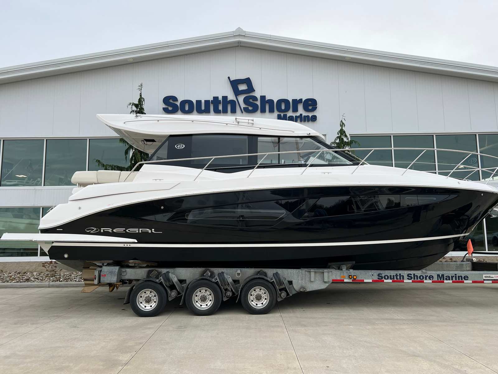This Regal yacht is perfect for a variety of boating adventures. Imagine hosting elegant cocktail parties on the spacious deck, with the stunning black hull and Tahiti Beach White accents providing a beautiful backdrop. Family outings become unforgettable experiences, with plenty of room for everyone to relax and enjoy the ride. The yacht’s powerful engines and smooth handling make it ideal for exploring new destinations, whether you’re cruising along the coast or venturing into open waters. The comfortable seating and luxurious finishes create a welcoming environment for fishing trips, romantic getaways, or simply unwinding with friends.