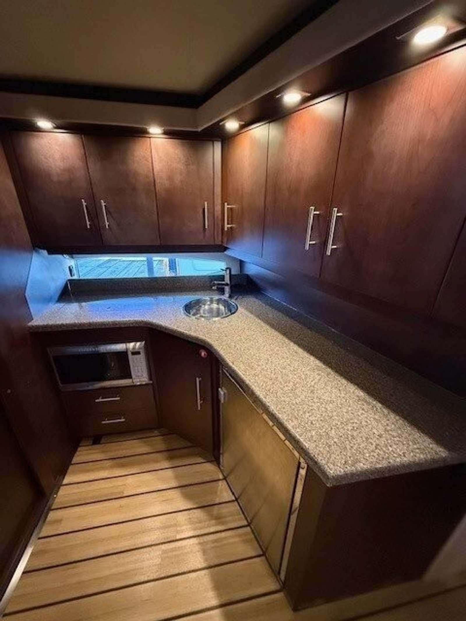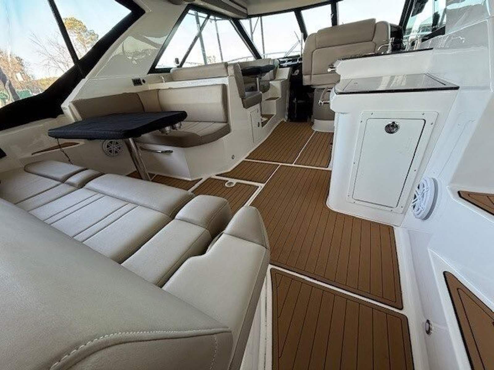 This freshwater-kept, covered-slip yacht has been meticulously maintained, receiving a wash every two weeks to keep it in pristine condition. Thoughtful upgrades add to its appeal, including SeaDek throughout the cockpit for enhanced comfort and style, a bilge heater for extended seasonal use, and the latest Fusion stereo and TVs to keep you entertained wherever you go.