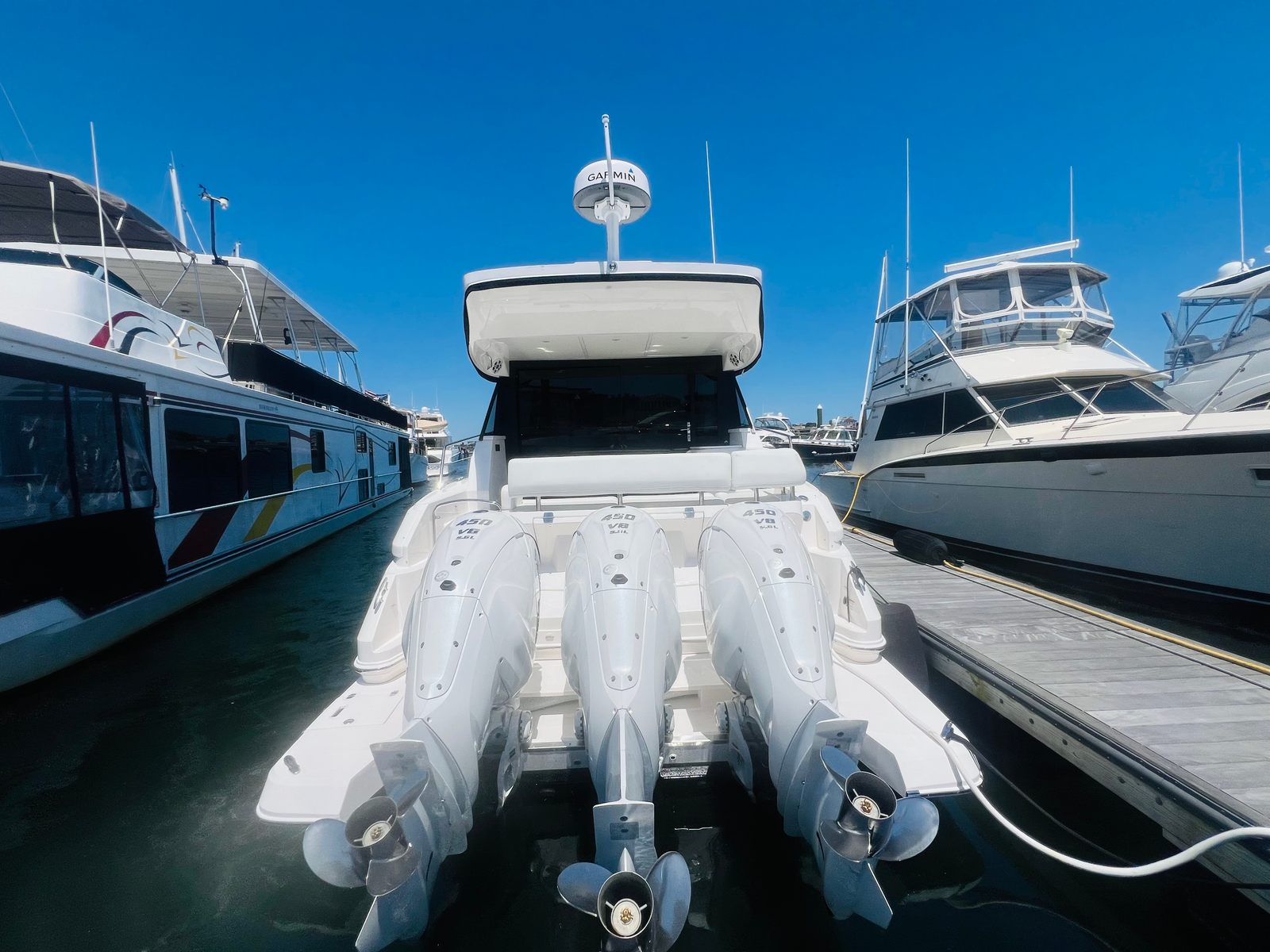 Power and precision are at the heart of the Regal 42 XO. Equipped with three robust engines delivering a combined 1350 horsepower, this yacht offers exhilarating performance and smooth handling. The triple-engine setup ensures responsive acceleration, effortless cruising, and reliable power for all your on-water adventures. Whether you are navigating coastal waters or exploring distant destinations, the Regal 42 XO’s impressive horsepower provides the confidence and capability you need. Automatic trim tabs further enhance the ride, optimizing stability and efficiency for a comfortable journey every time you set sail.