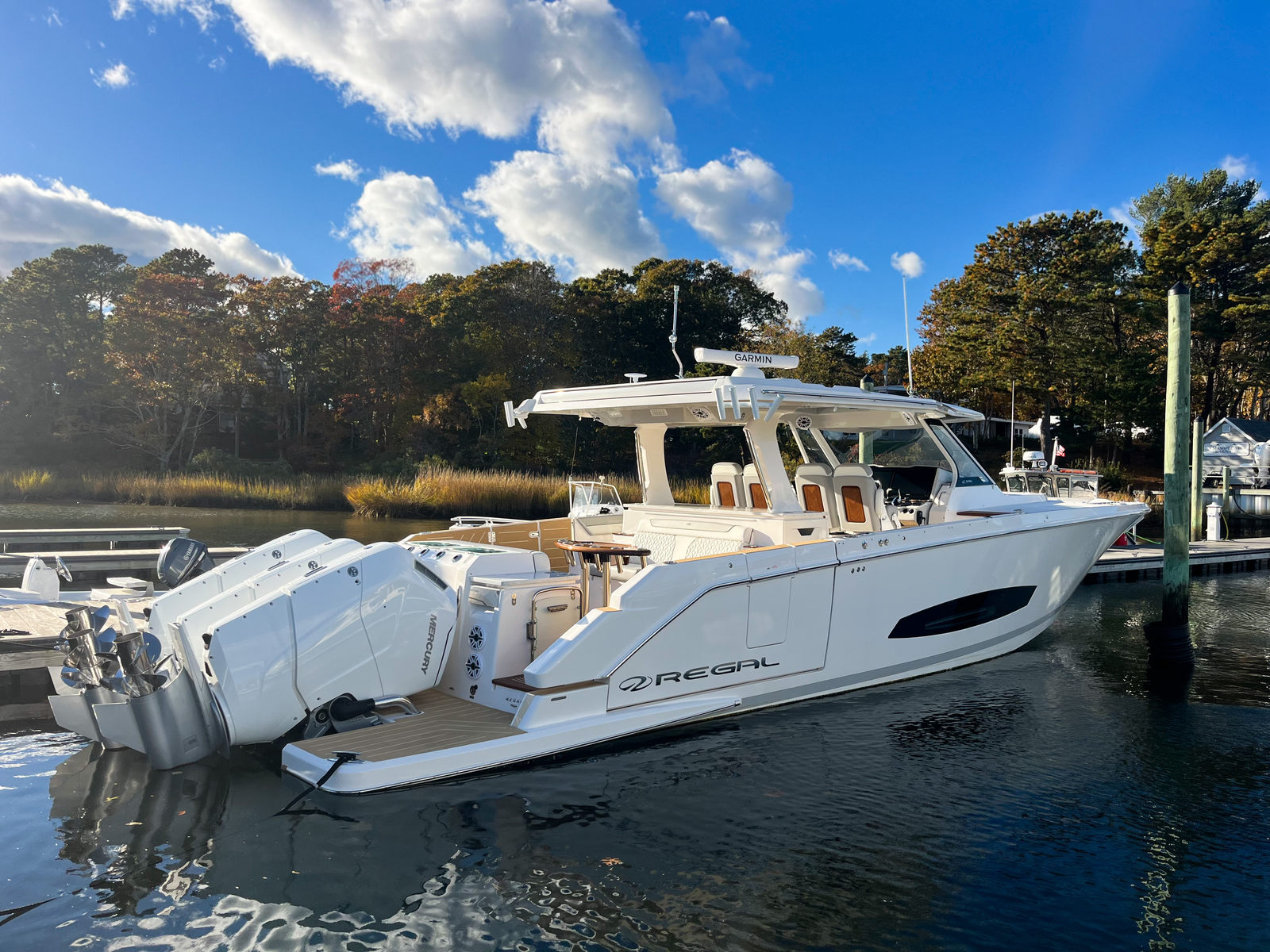 The Regal 43 SAV shines in a variety of scenarios, making it the perfect choice for a wide range of boating enthusiasts. Imagine setting out on a family adventure, with plenty of space for everyone to relax and play. The yacht’s entertainment features and comfortable seating areas make it ideal for hosting friends, whether you are anchored in a secluded cove or docked at a lively marina. For those who love fishing, the yacht’s stability and ample deck space provide an excellent platform for casting lines and reeling in the catch of the day. If luxury getaways are more your style, the Regal 43 SAV offers all the amenities you need for a relaxing escape, from gourmet meals enjoyed at the high gloss teak table to evenings spent watching the sunset from the spacious cockpit.