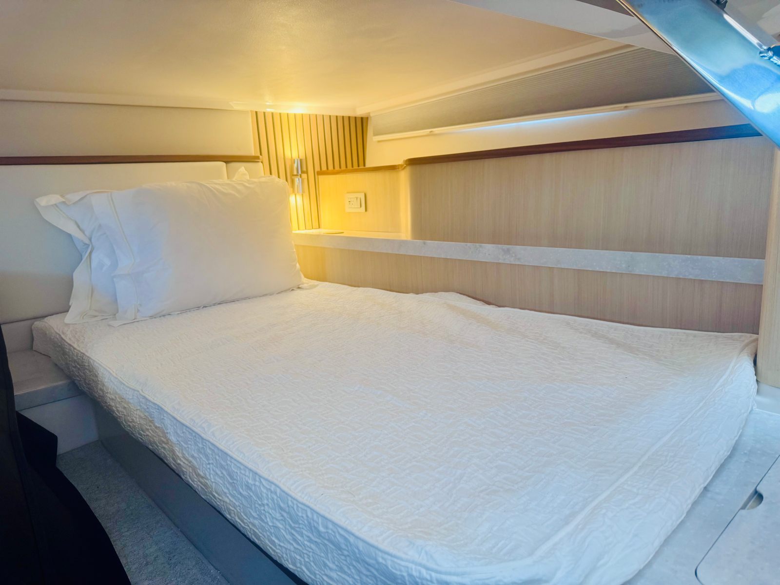 The Regal 43 SAV is as practical as it is luxurious. The ample storage options throughout the yacht make it easy to stow gear, supplies, and personal items, keeping the living spaces uncluttered and organized. Docking is simplified by the yacht’s responsive handling and advanced controls, allowing you to maneuver with ease in tight marinas or busy harbors. Fuel efficiency is enhanced by the yacht’s modern engine design, allowing you to spend more time on the water and less time at the fuel dock. The integrated refrigerator and convenient restroom facilities make it possible to enjoy longer excursions without sacrificing comfort or convenience.