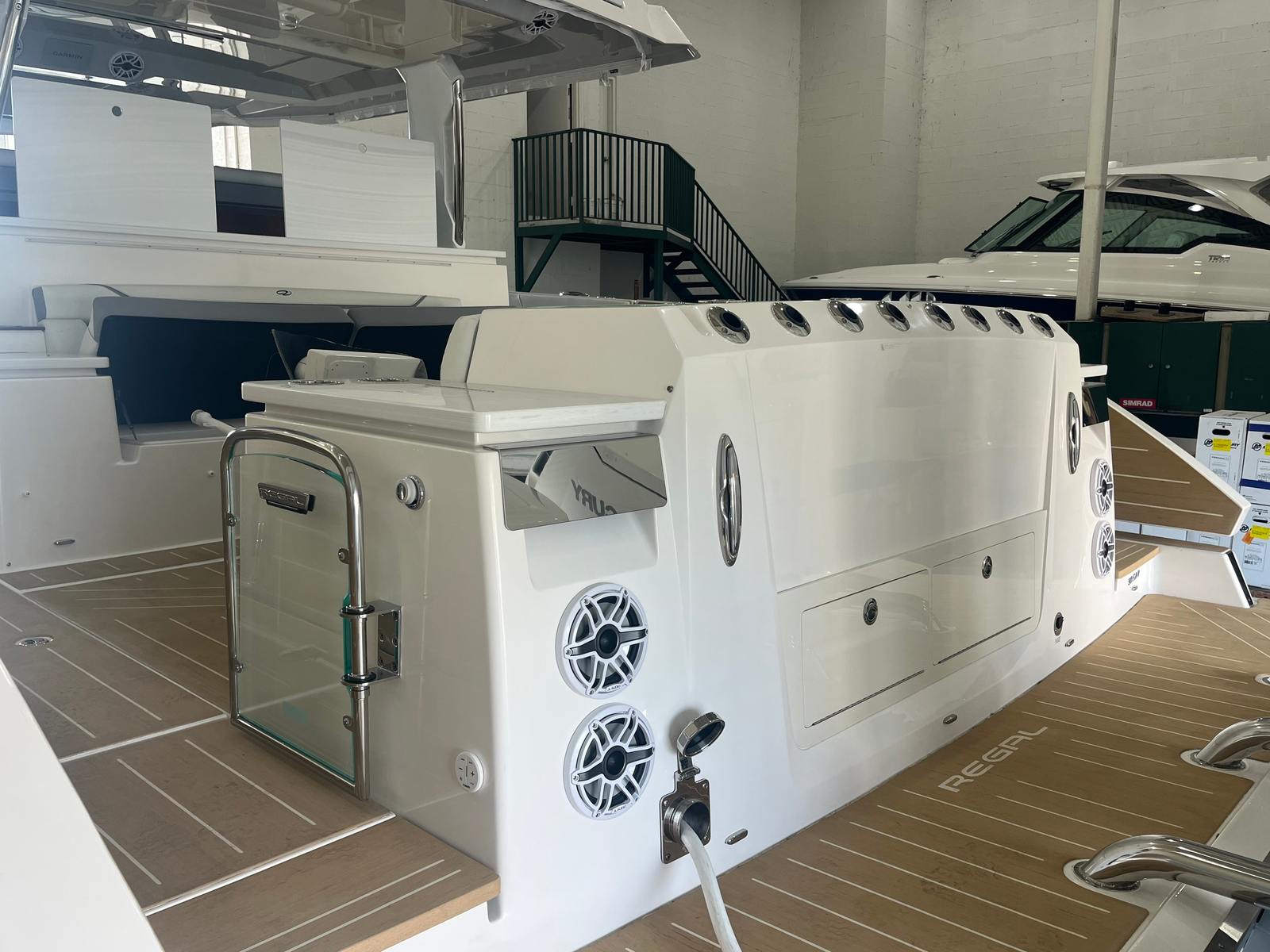 At the heart of the Regal 50 SAV’s exhilarating performance are three powerful Mercury 600HP Verado engines, delivering a combined 1800 horsepower. This triple-engine configuration ensures that you have the speed, agility, and reliability to tackle any adventure, from high-speed coastal runs to leisurely cruises with friends and family. The advanced engineering behind the Mercury Verado engines provides smooth acceleration, responsive handling, and impressive fuel efficiency, making every journey as enjoyable as it is memorable. Whether you are an experienced captain or a newcomer to yachting, the 50 SAV’s performance capabilities will inspire confidence and excitement every time you take the helm.