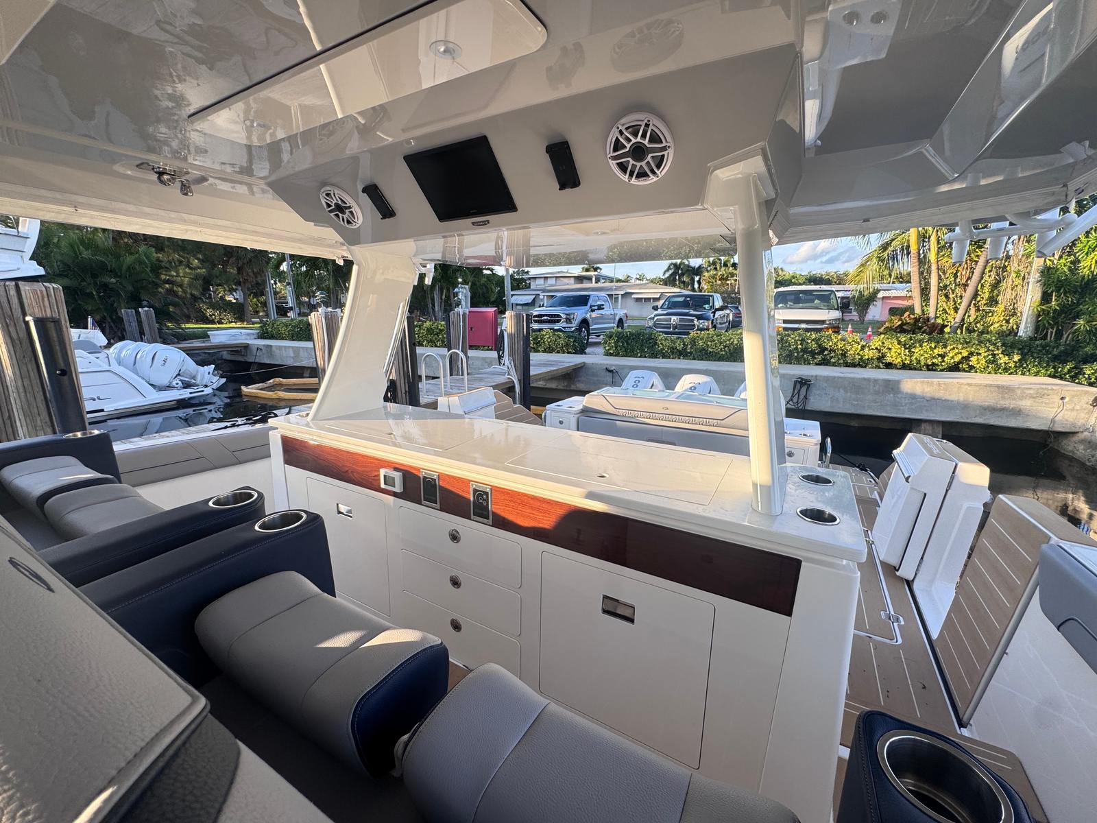 The Regal 50 SAV is as practical as it is luxurious, making ownership a pleasure from start to finish. The yacht’s generous storage options ensure that you have plenty of space for gear, supplies, and personal items, keeping the deck and living areas uncluttered and organized. Docking is made easier thanks to the yacht’s responsive handling and advanced engine system, allowing you to maneuver confidently in tight spaces.Fuel efficiency is another key benefit of the Regal 50 SAV, with the triple Mercury 600HP Verado engines designed to optimize performance while minimizing fuel consumption. This means you can spend more time exploring and less time refueling, making every trip more enjoyable and cost-effective. The durable synthetic teak steps and high-quality materials throughout the yacht ensure that maintenance is straightforward, so you can focus on enjoying your time on the water.