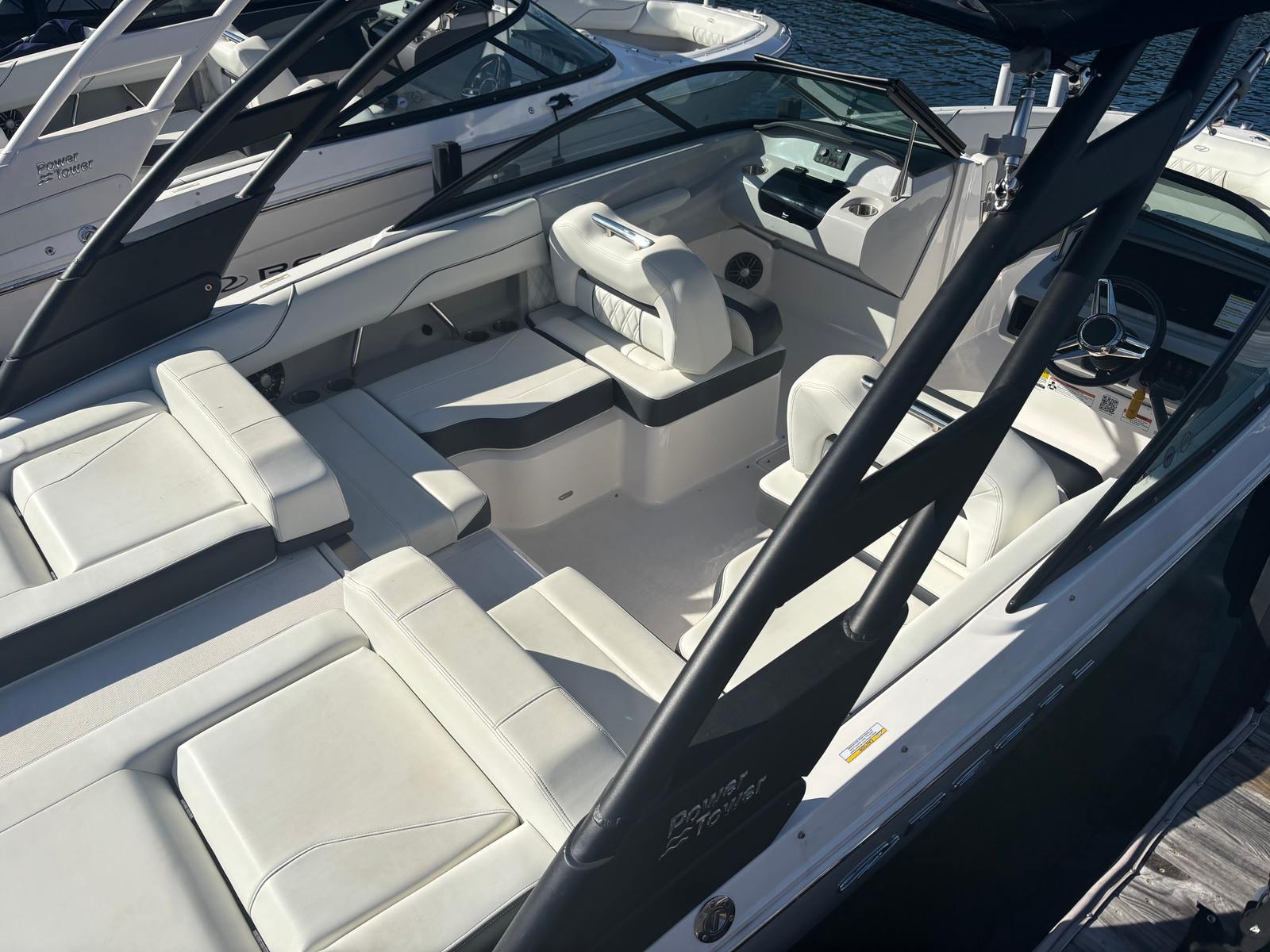 Owning the Regal LS2 bowrider means embracing a lifestyle of fun, relaxation, and social connection. The spacious bow seating area invites friends and family to gather, laugh, and soak up the sun. The open layout encourages easy movement throughout the boat, making it perfect for entertaining or simply unwinding after a day of water sports. The plush seating and ergonomic design ensure everyone on board enjoys a comfortable ride, whether you’re cruising at speed or anchored for a swim.The LS2’s advanced features, such as the dual Garmin 743 displays and OneCaptain system, provide peace of mind and effortless control, allowing you to focus on making memories. The powerful Volvo engine ensures you have the performance needed for water skiing, wakeboarding, or simply exploring new destinations. With its stylish design and premium finishes, the Regal LS2 is sure to impress guests and fellow boaters alike.