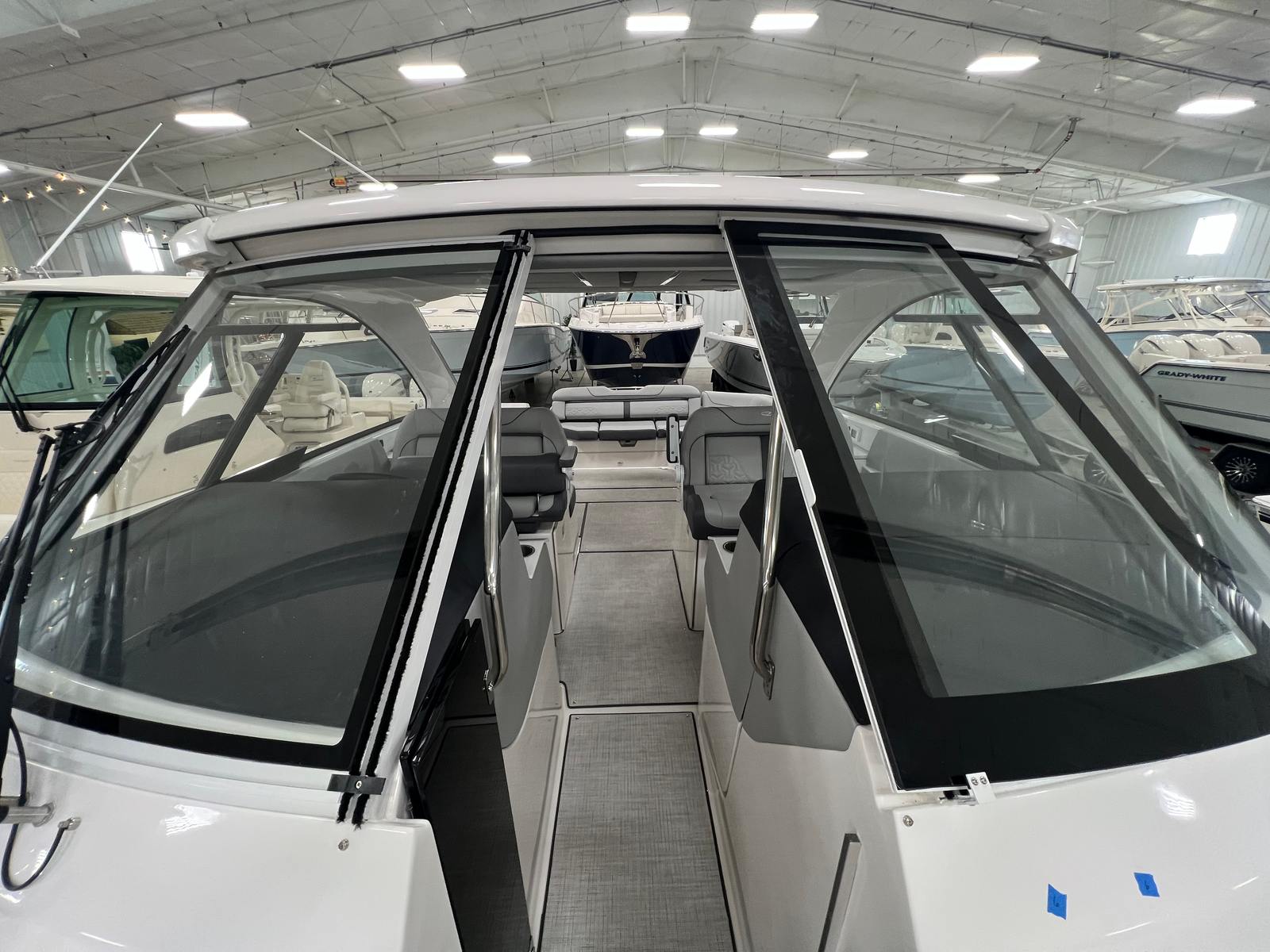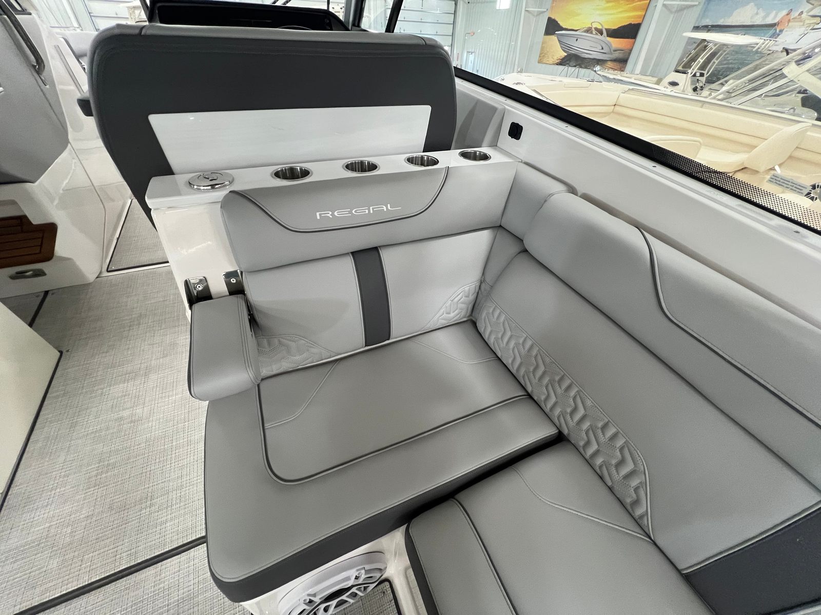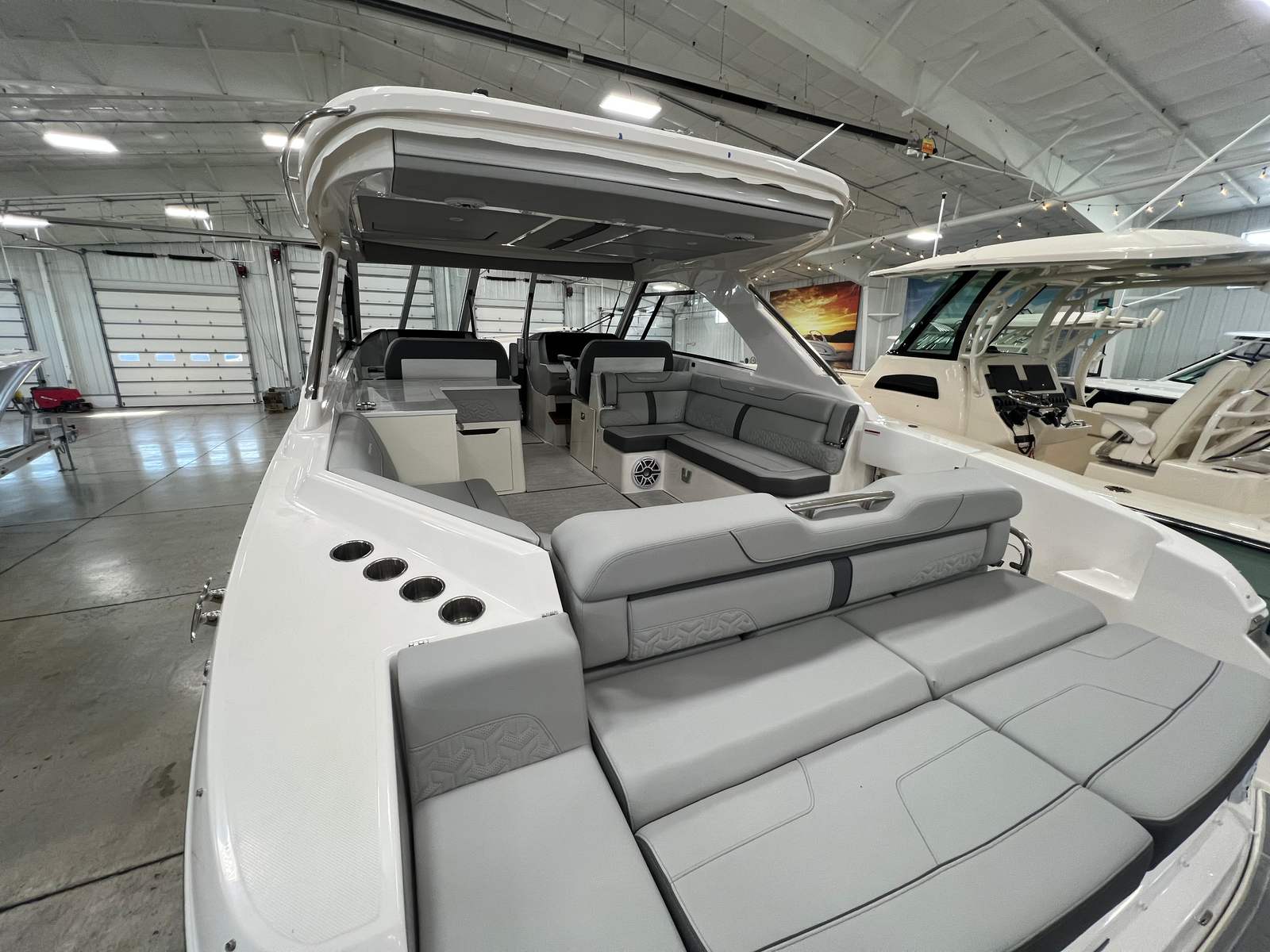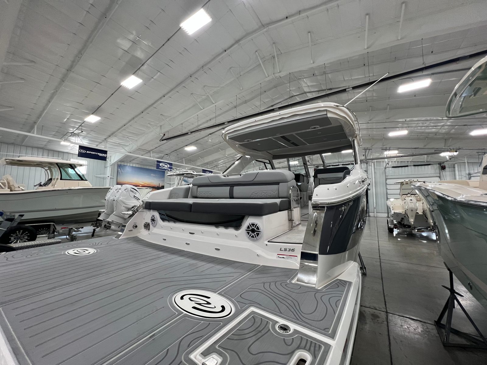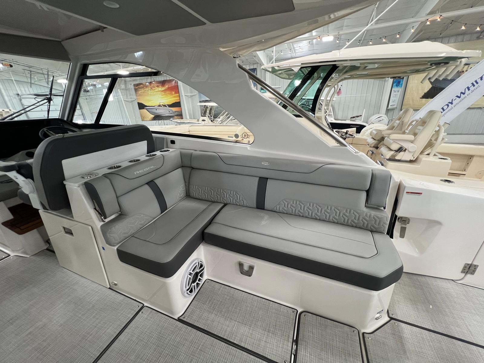 The Regal LS36 is designed with the needs of modern boaters in mind. The ample storage throughout the boat ensures that all your gear, water toys, and personal items are neatly stowed yet easily accessible. The bow thruster simplifies docking, making it stress-free to maneuver in tight spaces or busy marinas. The efficient design of the twin engines helps maximize fuel economy, so you can spend more time enjoying the water and less time refueling.The durable materials and thoughtful construction mean that maintenance is straightforward, allowing you to focus on what matters most—enjoying your time on the water. The versatile cockpit enclosure provides shelter when needed, extending your boating season and enhancing comfort during unpredictable weather.