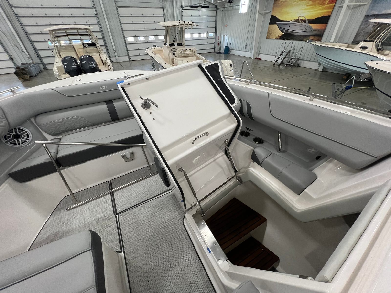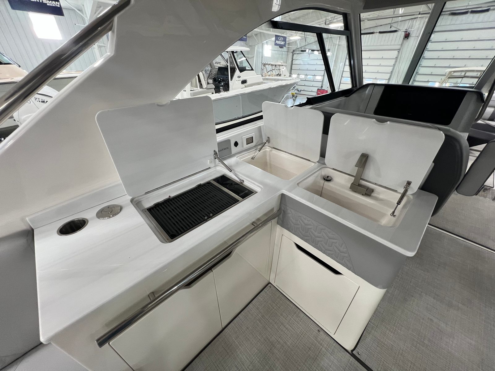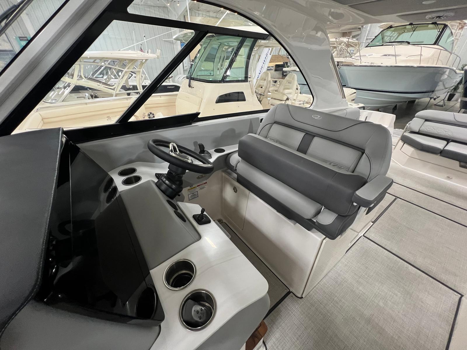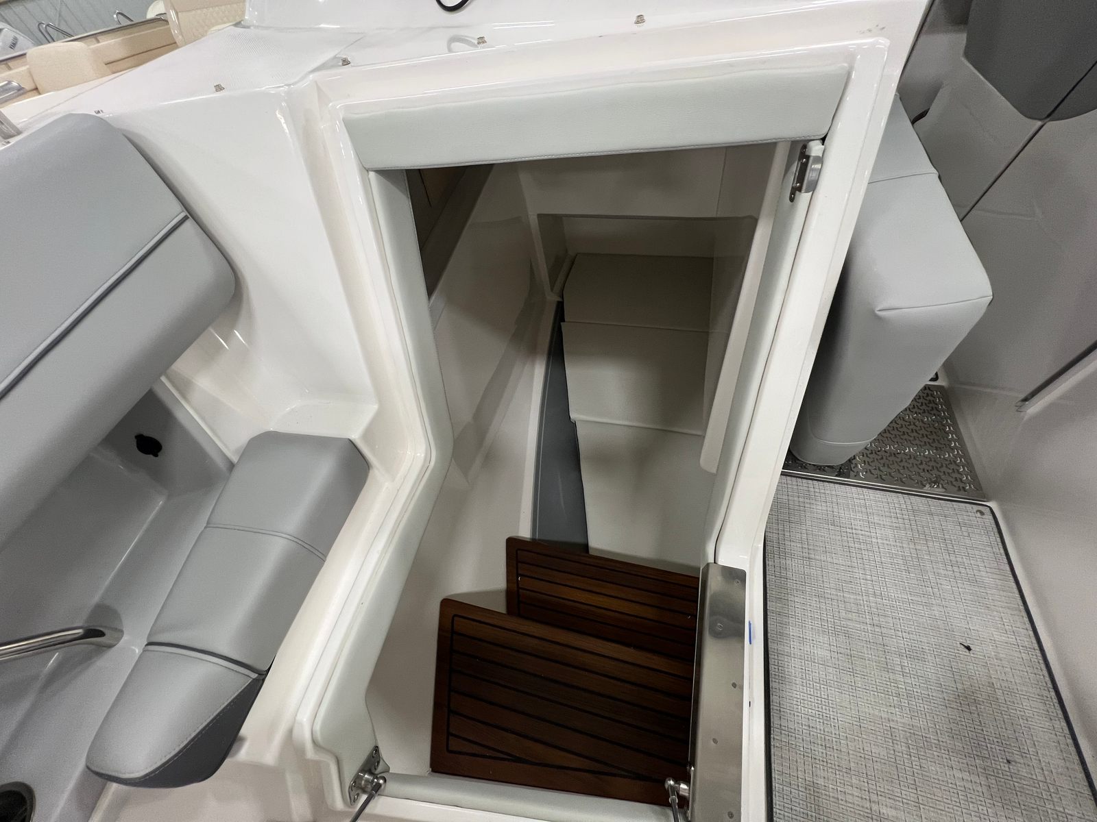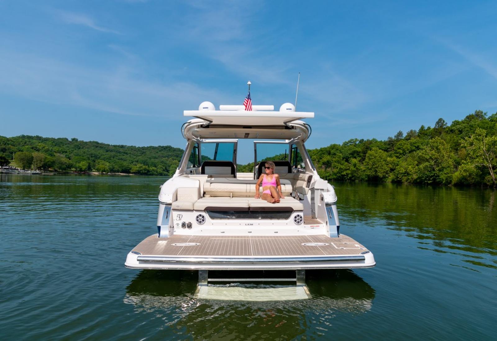 The Regal LS36 is designed with the needs of modern boaters in mind. The ample storage throughout the boat ensures that all your gear, water toys, and personal items are neatly stowed yet easily accessible. The bow thruster simplifies docking, making it stress-free to maneuver in tight spaces or busy marinas. The efficient design of the twin engines helps maximize fuel economy, so you can spend more time enjoying the water and less time refueling.The durable materials and thoughtful construction mean that maintenance is straightforward, allowing you to focus on what matters most—enjoying your time on the water. The versatile cockpit enclosure provides shelter when needed, extending your boating season and enhancing comfort during unpredictable weather.