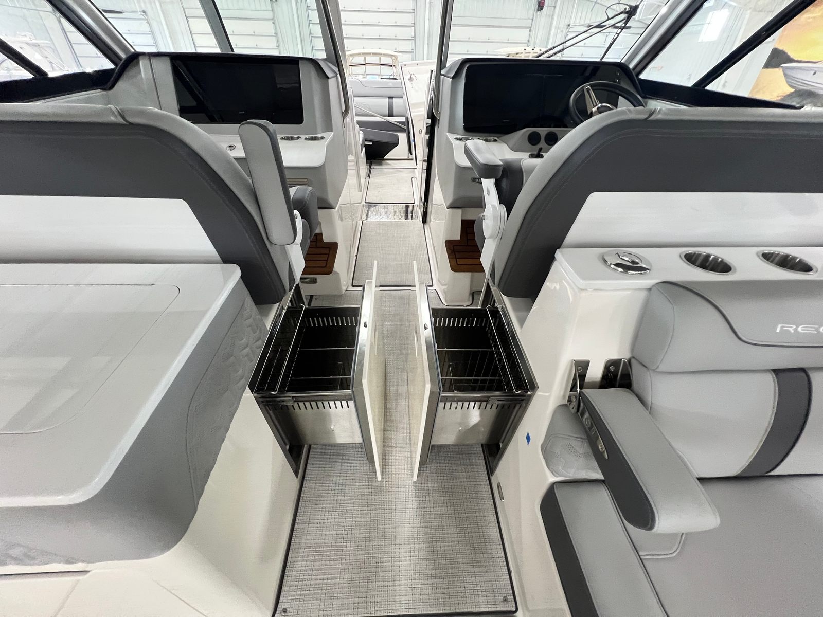 The 2026 Regal LS36 is packed with premium features that elevate your boating experience. The Aft Cockpit Canvas with a Palm Beach Enclosure provides versatile protection from the elements, allowing you to enjoy your time on the water in comfort, rain or shine. The Anchor Windlass with an all-chain setup ensures secure and hassle-free anchoring, while the Bow Cover in White Stamoid keeps the forward seating area protected when not in use.Step aboard and you will notice the inviting Cockpit Seagrass Mat, which adds a touch of luxury underfoot and is easy to maintain. Entertaining is a breeze with the Cockpit Refrigerator, keeping your refreshments chilled and close at hand. The beautifully crafted Cockpit Table in Teak offers a perfect spot for snacks, drinks, or a casual meal with friends. The Companion Volvo 16 Glass Cockpit provides state-of-the-art navigation and control, giving you confidence and clarity at the helm.