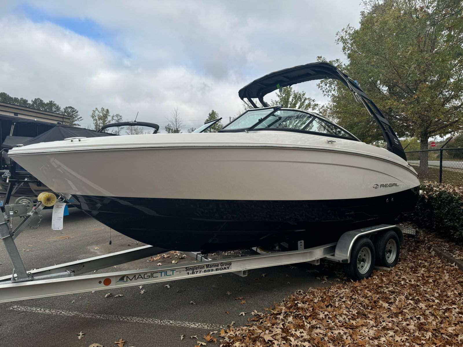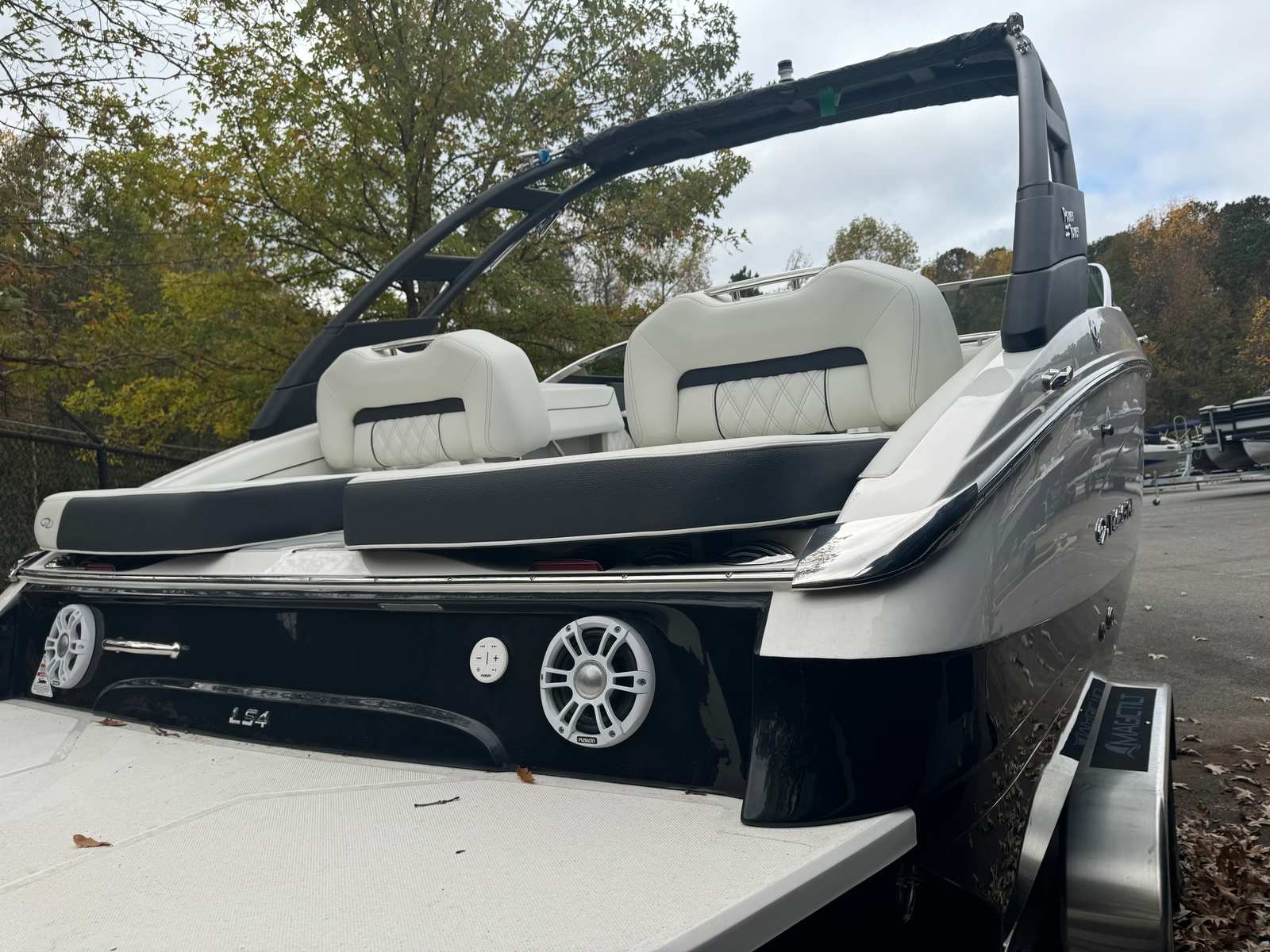 The 2025 Regal LS4 is loaded with features designed to enhance your time on the water. The hull is finished in a striking Tahiti Beach White, complemented by a matching bootstripe and a bold black bottom color, creating a sophisticated and modern look. The Titanium accents add an extra touch of elegance, ensuring your boat stands out wherever you go.For protection and convenience, the LS4 comes with a travel storage cover in black, as well as a black canvas that adds both style and durability. The cockpit is outfitted with a luxurious seagrass mat, providing a comfortable and slip-resistant surface for you and your guests. The dual battery switch with tray and cables ensures reliable power management, giving you peace of mind during extended outings.Music and ambiance are elevated with the Stereo Performance & Lighting Package, transforming your boat into the ultimate entertainment hub. Whether you’re hosting a sunset cruise or a lively day on the water, the premium sound system and customizable lighting set the perfect mood.