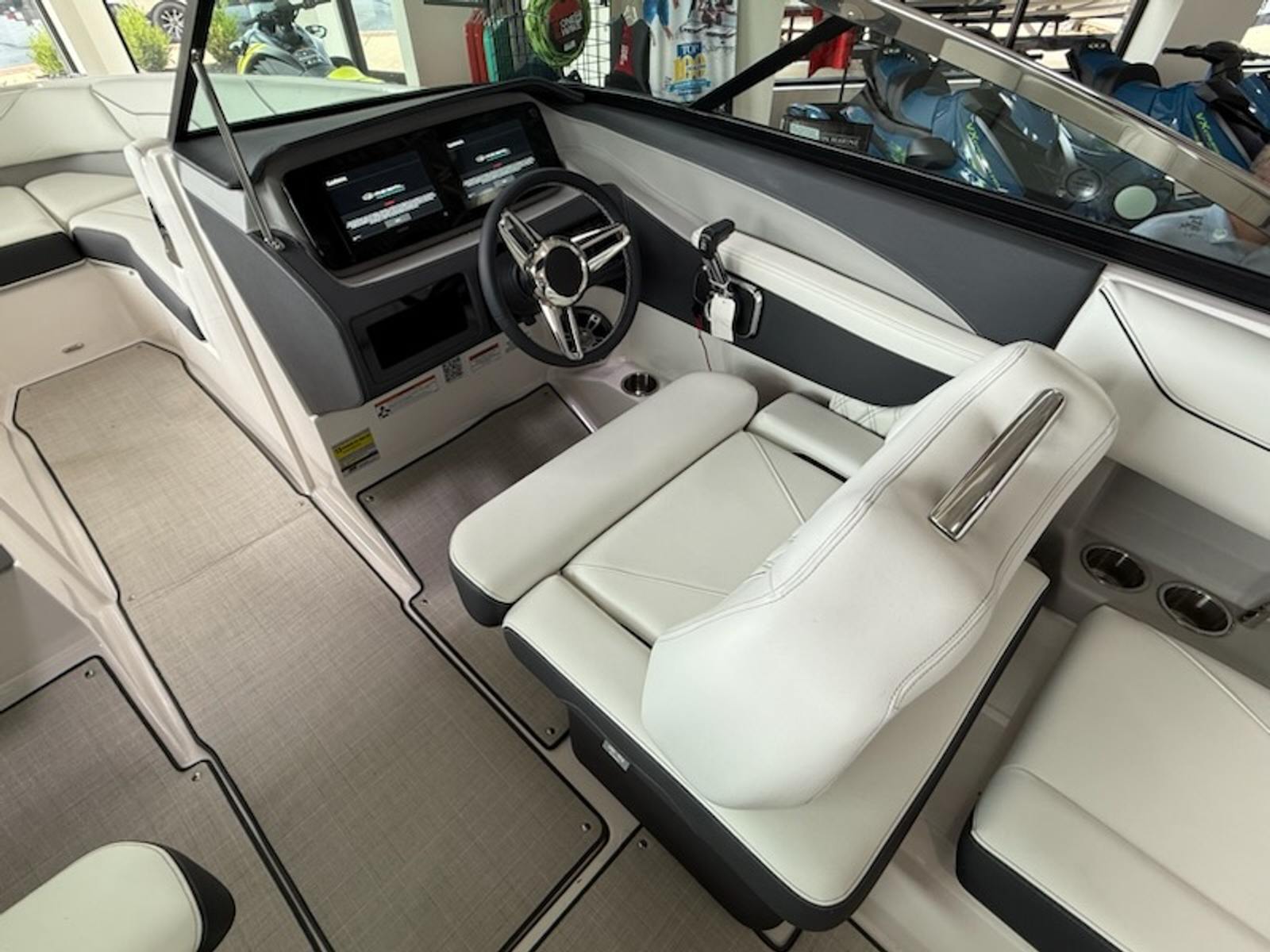 The Regal LS4 Bowrider is packed with special features that elevate your boating experience. The hull and bottom are finished in the eye-catching Tahiti Beach White, complemented by a striking Black bootstripe for a sophisticated look. The Black canvas adds a touch of elegance and durability, while the PowerTower S2 in Black and Titanium offers convenience and style, making it easy to store and deploy water sports equipment.Step into the cockpit and you’ll find a luxurious Seagrass mat that enhances comfort and adds a premium feel underfoot. The stainless steel flag pole with a U.S. flag is a proud statement of craftsmanship and patriotism, perfect for displaying on holidays or special occasions. Practicality is also at the forefront, with a battery charger to keep your electronics powered and a travel storage cover in Black to protect your investment during transport or off-season storage.