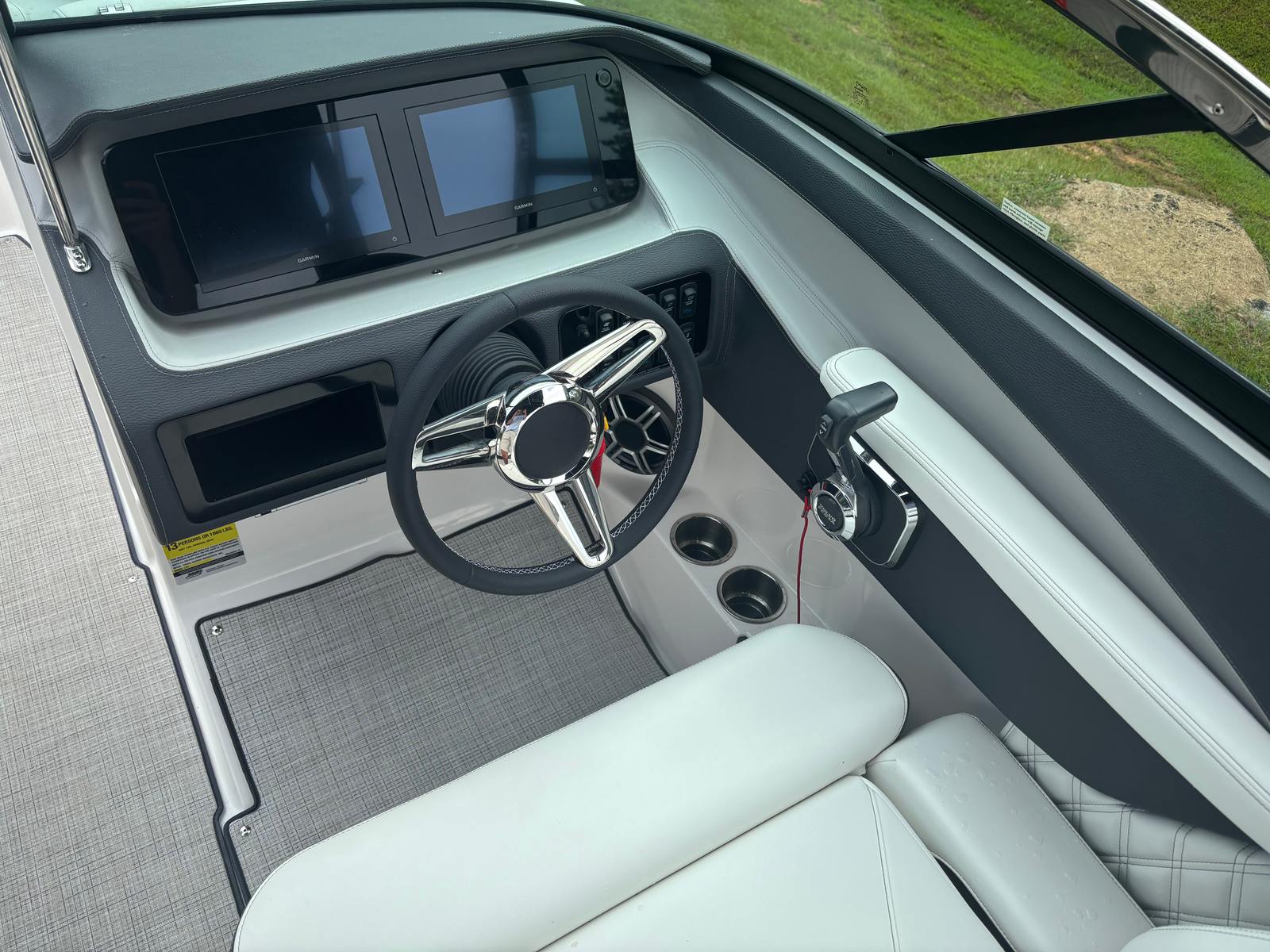 The Regal LS4 Bowrider is packed with premium features that elevate your boating experience. The Titanium and Graphite accents give the boat a contemporary, upscale look, while the Tahiti Beach White finish adds a touch of elegance and sophistication. The Cockpit Seagrass Mat offers a plush, comfortable surface underfoot, enhancing the overall ambiance and making every trip feel like a luxury escape.For added convenience, the LS4 is equipped with Fender Clips, making docking and mooring a breeze. The Dual Garmin 943 navigation system provides state-of-the-art technology for chart plotting and route planning, ensuring you stay on course with confidence. The PowerTower S2 in sleek black not only adds to the boat’s striking appearance but also offers practical benefits for watersports and storage.Show your patriotic spirit with the Stainless Steel Flag Pole and U.S. Flag, a stylish touch that sets your boat apart. The Stereo Performance & Lighting Package transforms the LS4 into the ultimate entertainment hub, allowing you to set the mood with vibrant lighting and crystal-clear sound for every occasion.