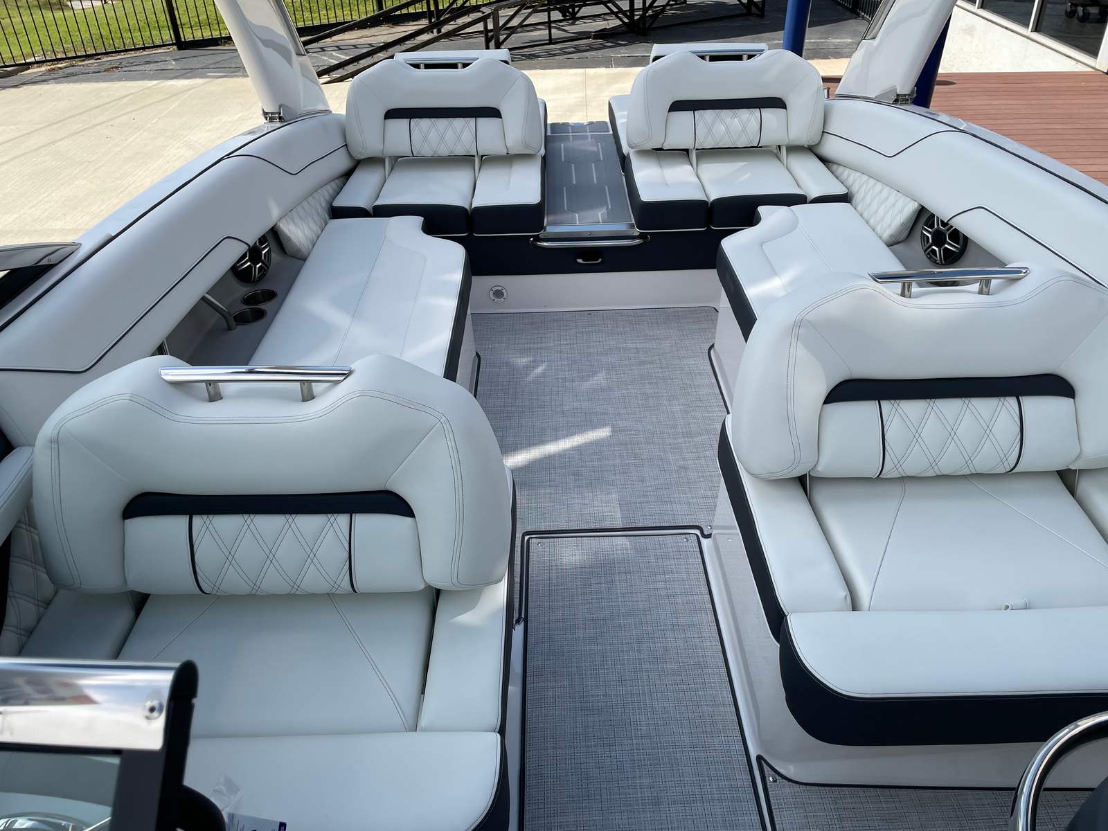 Owning the Regal LS6 Surf means embracing a lifestyle of fun, relaxation, and connection. The spacious bowrider layout offers plenty of room for family and friends, making it easy to host gatherings, celebrate special occasions, or simply enjoy a day on the water. The plush seating and thoughtful design details create an inviting atmosphere, while the advanced engine and hull design promise excitement for watersports lovers. The SeaDek swim platform and cockpit seagrass mat enhance comfort and safety, allowing everyone to move freely and enjoy every moment. With its eye-catching color scheme and premium finishes, the LS6 Surf is as stylish as it is functional, ensuring you make a statement wherever you go.