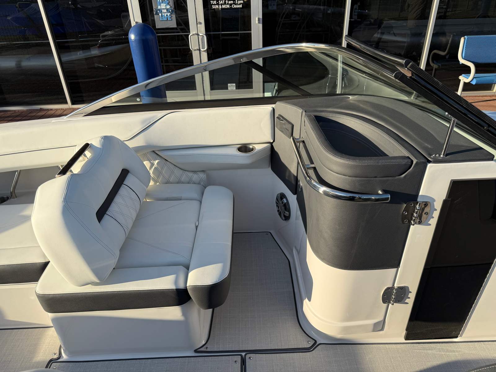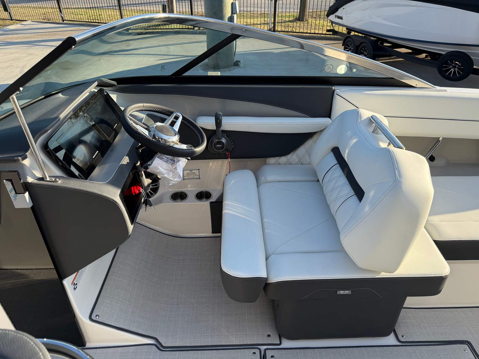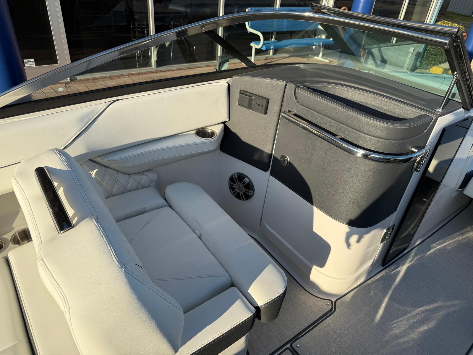 The 2025 Regal LS6 Surf is a new 26.33-foot bowrider that showcases the latest in marine design and engineering. Regal’s reputation for quality craftsmanship is evident in every detail, from the striking hull color in Graphite to the bold Flame Red bootstripe and Graphite bottom color. The Titanium accents add a touch of sophistication, making this boat a true head-turner at any marina or on open water. Whether you are a seasoned boater or new to the world of recreational boating, the LS6 Surf offers a perfect balance of comfort, style, and functionality.