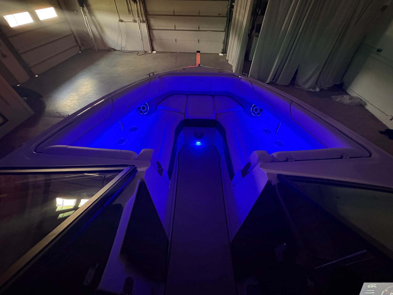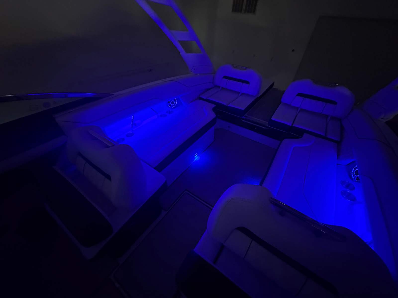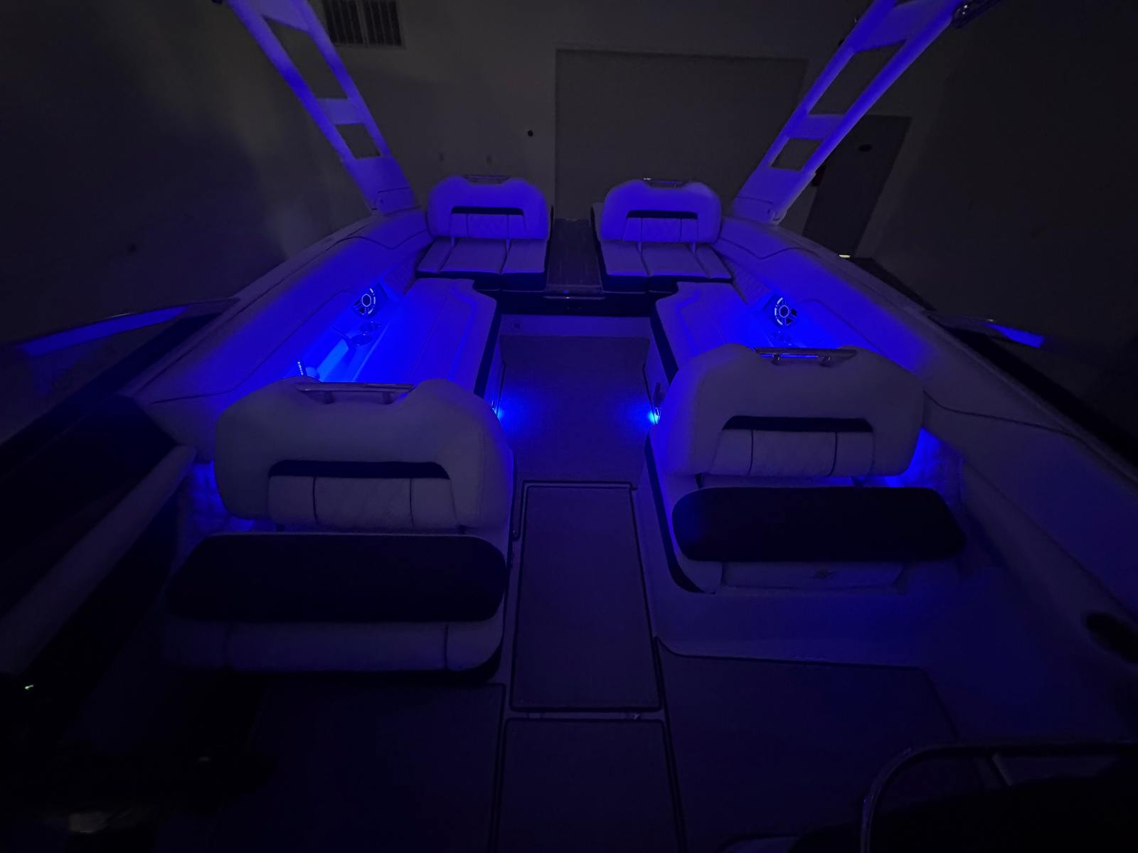 Practicality is at the core of the Regal LS6’s design. The travel storage cover and durable canvas protect your boat from the elements, reducing maintenance and preserving its showroom shine. The dual battery switch with tray and cables provides reliable power management, ensuring your electronics and accessories are always ready for use. The cockpit seagrass mat is not only stylish but also easy to clean, making post-adventure tidying a breeze.Docking and maneuvering are simplified by the LS6’s responsive handling and thoughtfully engineered hull, making it suitable for both experienced captains and those new to boating. The efficient Volvo engine helps keep fuel costs manageable, so you can spend more time enjoying the water and less time worrying about expenses. With ample storage throughout the boat, you’ll have plenty of space for gear, snacks, and water toys, ensuring every outing is well-equipped and stress-free.