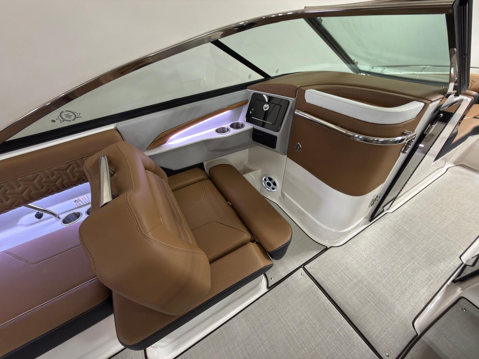 The Regal LS9 Bowrider is designed with practicality in mind, making ownership a breeze. The bow thruster and transom trim switch simplify docking and maneuvering, even in crowded marinas or tight spaces. The digital switching system provides intuitive control over onboard electronics, enhancing safety and convenience. Indicators for trim tabs help you optimize performance and fuel efficiency, ensuring smooth rides and cost-effective operation.Bow & cockpit covers protect your boat from sun, rain, and debris, preserving its pristine condition and reducing maintenance. The ample storage space allows you to stow gear, snacks, and water toys, keeping the deck clutter-free and organized. Whether you’re planning a quick afternoon escape or an all-day adventure, the LS9’s thoughtful design makes preparation and cleanup effortless.
