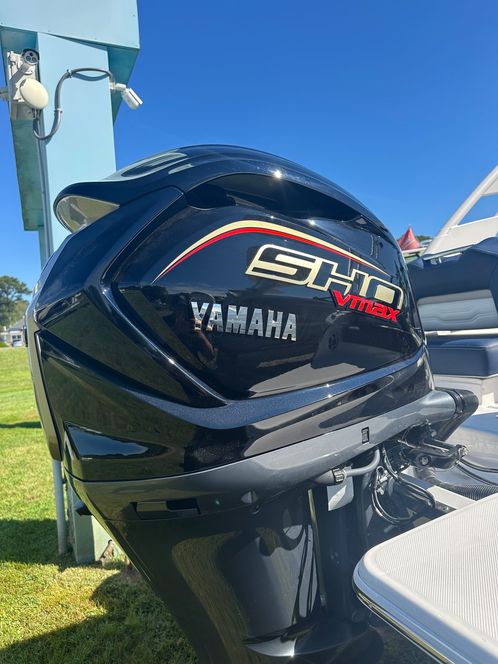 The Regal LX2 is loaded with features that enhance both functionality and enjoyment on the water. The striking Steel Gray hull and Tahiti Beach White bottom create a modern, eye-catching aesthetic, while the Steel Gray boot stripe adds a touch of elegance. The Mediterranean Blue canvas provides stylish protection from the elements, ensuring comfort in any weather. Bow and cockpit covers keep your boat protected when not in use, preserving its pristine condition for years to come.For added convenience and peace of mind, the dual battery switch with tray and cables ensures reliable power management, so you can enjoy longer days on the water without worry. The transom shower and pressure water package make rinsing off after a swim easy and convenient, adding a touch of luxury to your boating experience. The stainless steel upgrade package not only enhances durability but also adds a premium look and feel throughout the boat.Water sports enthusiasts will appreciate the dedicated tow pylon, making it easy to enjoy wakeboarding, tubing, and other activities. The bow walk-thru doors provide seamless access between the bow and cockpit, improving safety and convenience for passengers moving around the boat.