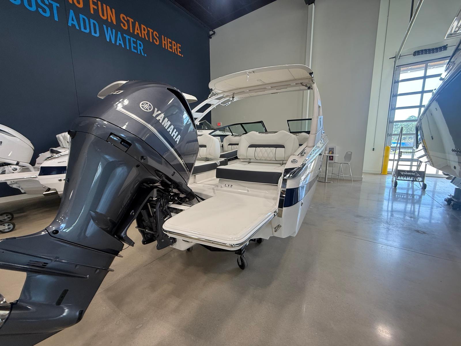 The 2026 Regal LX2 Bowrider shines in a variety of settings, making it the ideal choice for families, friends, and boating enthusiasts alike. Imagine spending a sunny afternoon cruising along the coast, with the Mediterranean Blue bootstripe glinting in the sunlight and the Titanium interior providing a cool, comfortable retreat. The LX2 is perfect for family outings, offering plenty of space for kids to play and adults to relax.For those who love water sports, the powerful Yamaha F250XB engine delivers the speed and agility needed for tubing, wakeboarding, or skiing. The boat’s stylish design and premium features also make it a great option for entertaining guests, whether you’re hosting a casual picnic on the water or an elegant sunset cocktail cruise. With its versatile layout and advanced features, the Regal LX2 adapts to your lifestyle and ensures every outing is a special occasion.