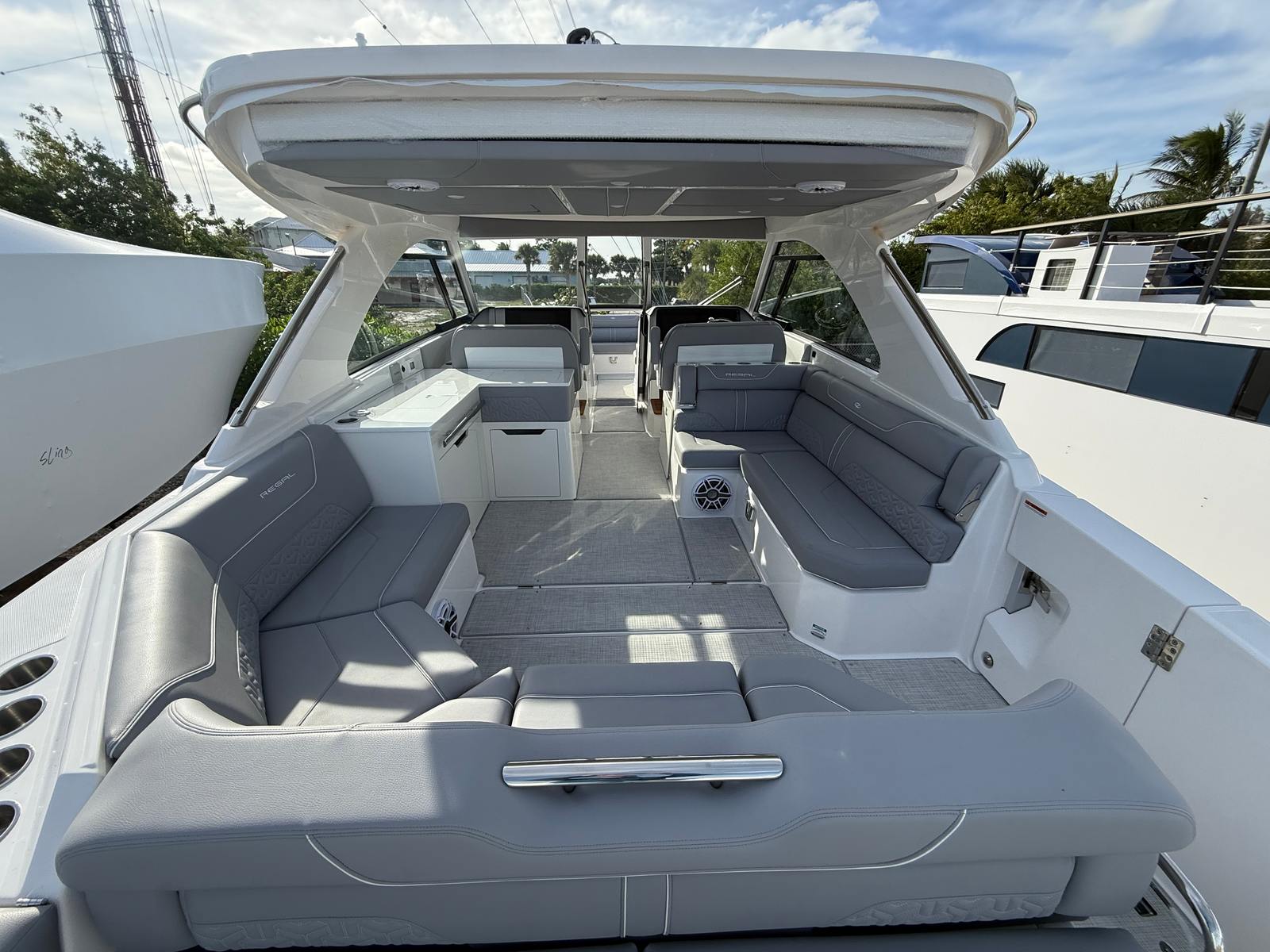 Power and precision are at the heart of the Regal LX36. Equipped with twin engines delivering a combined 800 horsepower, this bowrider offers exhilarating acceleration and smooth handling. Whether you’re cruising along the coastline, exploring hidden coves, or enjoying watersports, the LX36’s robust engine setup ensures you have the power and reliability needed for any adventure. The dual-engine configuration also enhances maneuverability, making docking and navigating tight spaces effortless. With Regal’s commitment to performance, you can expect a responsive ride that’s both thrilling and comfortable.