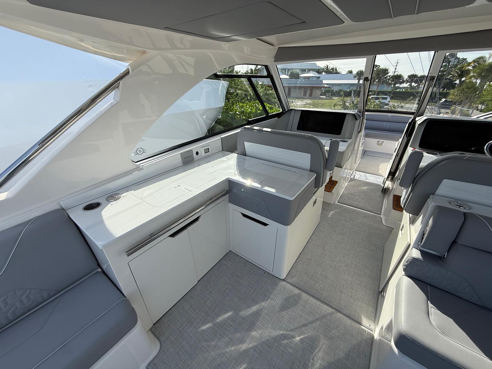 Beyond its luxurious amenities, the Regal LX36 is designed with practicality in mind. The spacious cockpit and smart storage solutions make it easy to stow gear, water toys, and personal items, keeping the deck clutter-free and organized. The wireless remote for the windlass streamlines the anchoring process, allowing you to secure your boat quickly and safely. The efficient engine setup not only delivers impressive performance but also helps optimize fuel usage, making longer trips more economical.Docking is a breeze thanks to the LX36’s responsive handling and dual engines, giving you confidence in any marina or docking situation. The durable materials and high-quality construction ensure that your investment remains in top condition for years to come, while the easy-to-clean surfaces and thoughtful layout simplify maintenance and upkeep.