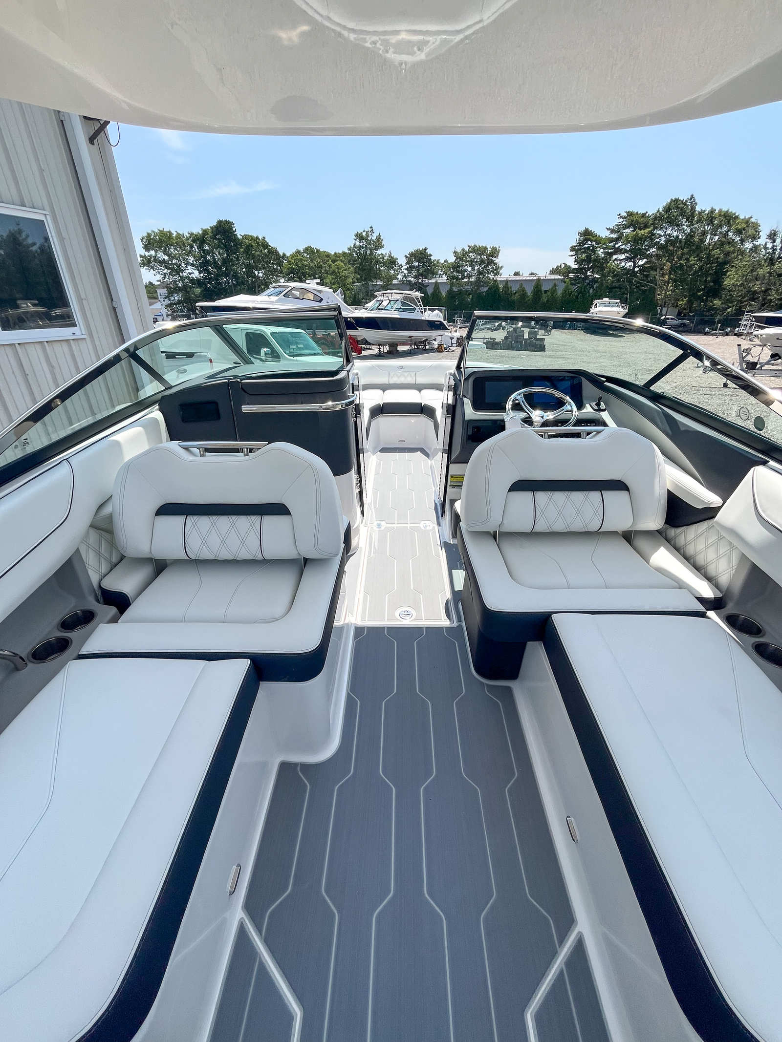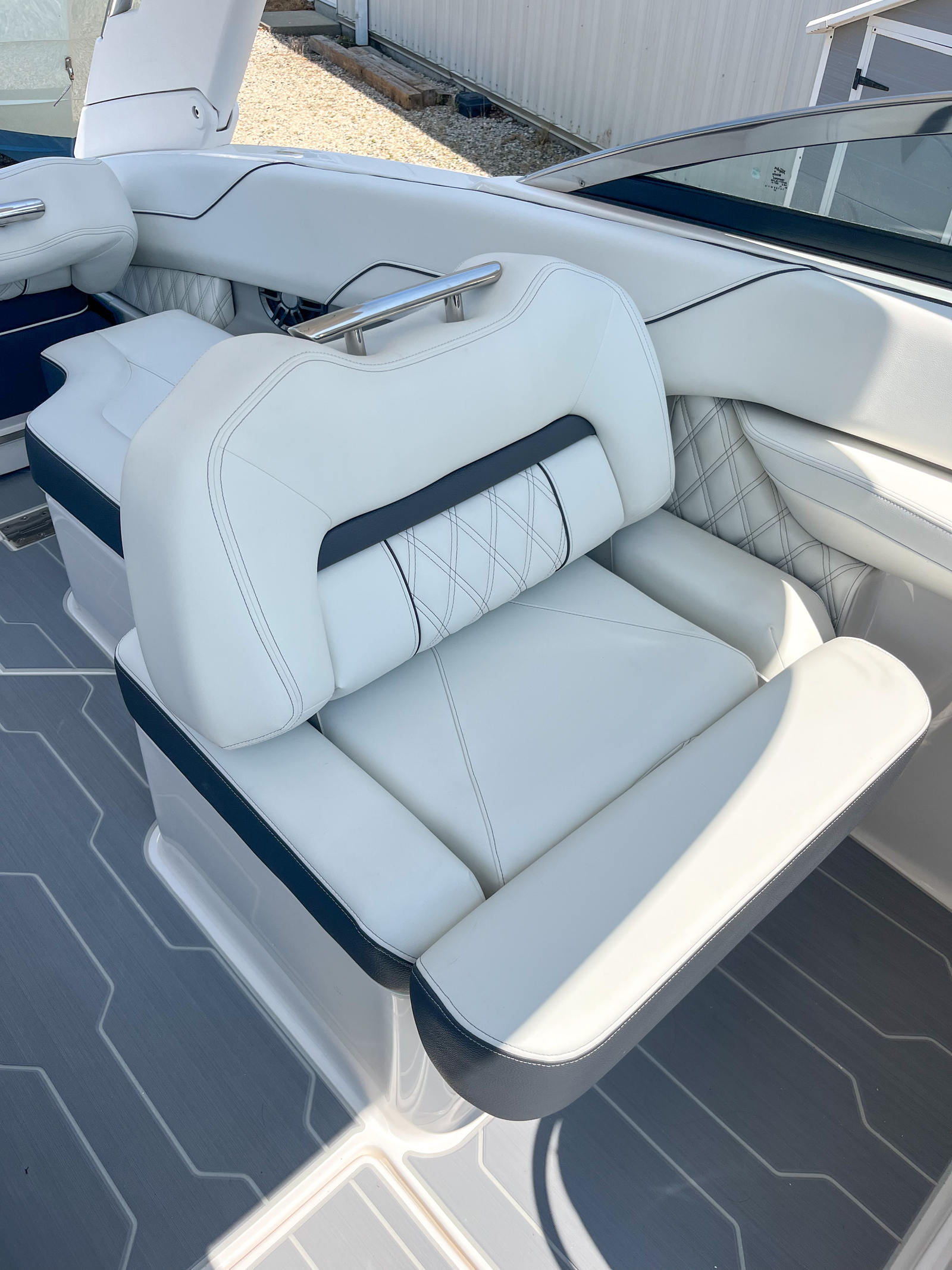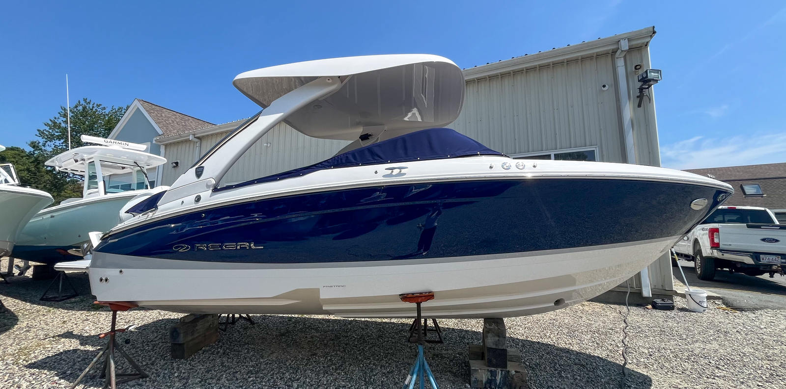 The Regal LX4 is designed with practicality in mind, making ownership a breeze. The bow walk-thru doors allow easy movement throughout the boat, enhancing safety and accessibility for all passengers. Docking lights and fender clips simplify the process of mooring, ensuring you can dock with confidence even in challenging conditions. Ample storage options mean you can bring along all your gear, from water toys to picnic supplies, without sacrificing space or comfort. The efficient engine and hull design help keep fuel costs manageable, so you can spend more time enjoying the water and less time worrying about refueling. The dual Garmin 943XS displays and B60 transducer provide peace of mind, whether you’re navigating unfamiliar waters or seeking out the best fishing spots.