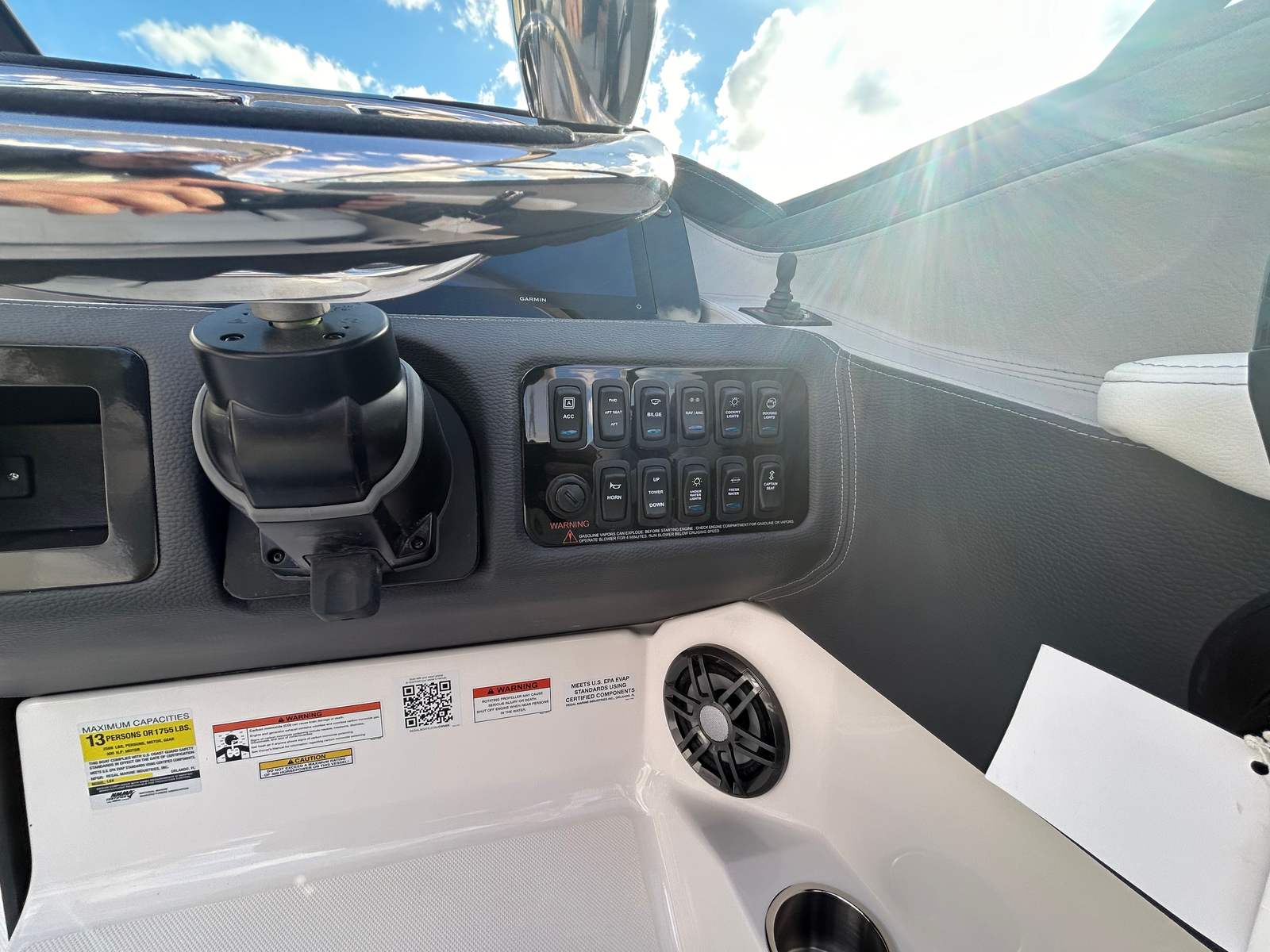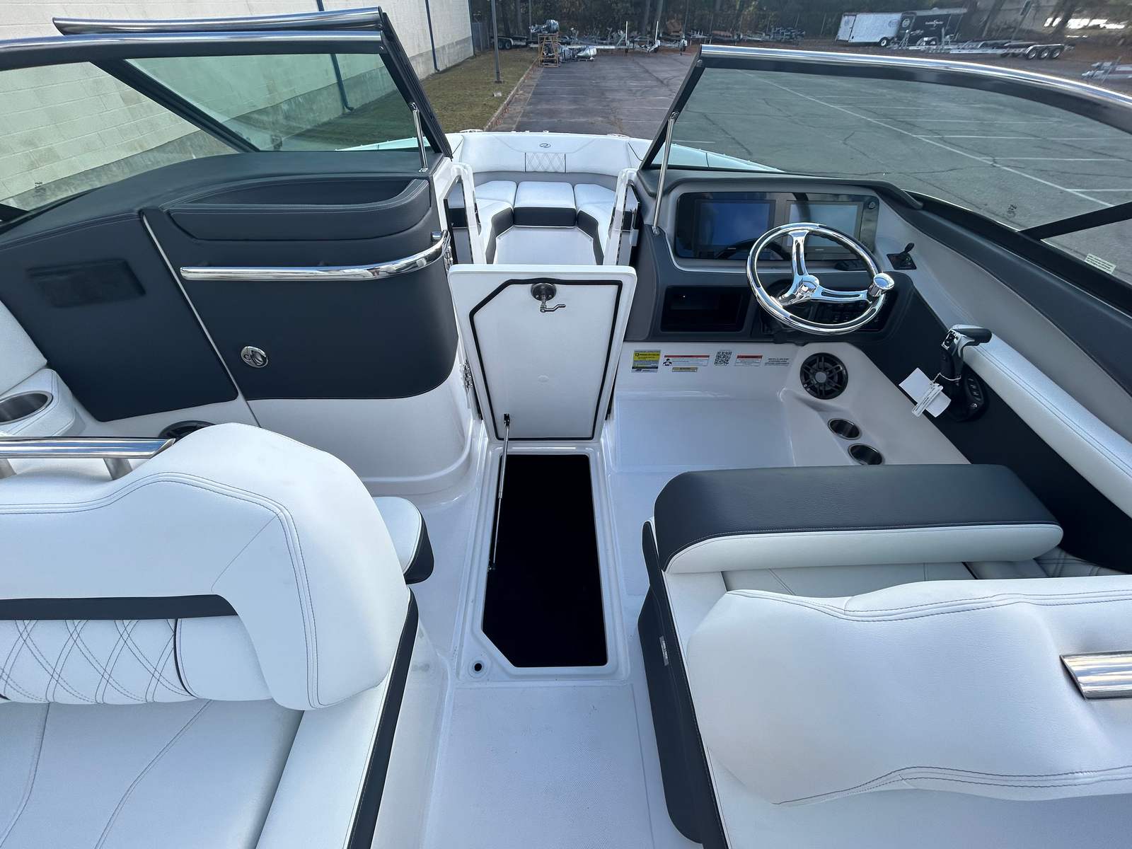 The Regal LX4 is designed with practicality in mind, offering features that simplify ownership and enhance your boating experience. The dual battery switch ensures you always have reliable power, even during long days on the water. The bow thruster makes docking and maneuvering in tight spaces a breeze, reducing stress and increasing safety. The protective bow and cockpit covers help keep your boat looking its best, while the durable Steel Grey canvas stands up to the elements.The transom shower and pressure water package provide added convenience for rinsing off gear, sandy feet, or saltwater after a swim. The spacious cockpit and bow areas offer ample room for storing water toys, coolers, and other essentials, making it easy to prepare for any adventure. The LX4’s efficient design and powerful engine also contribute to fuel savings, allowing you to spend more time enjoying the water and less time at the pump.