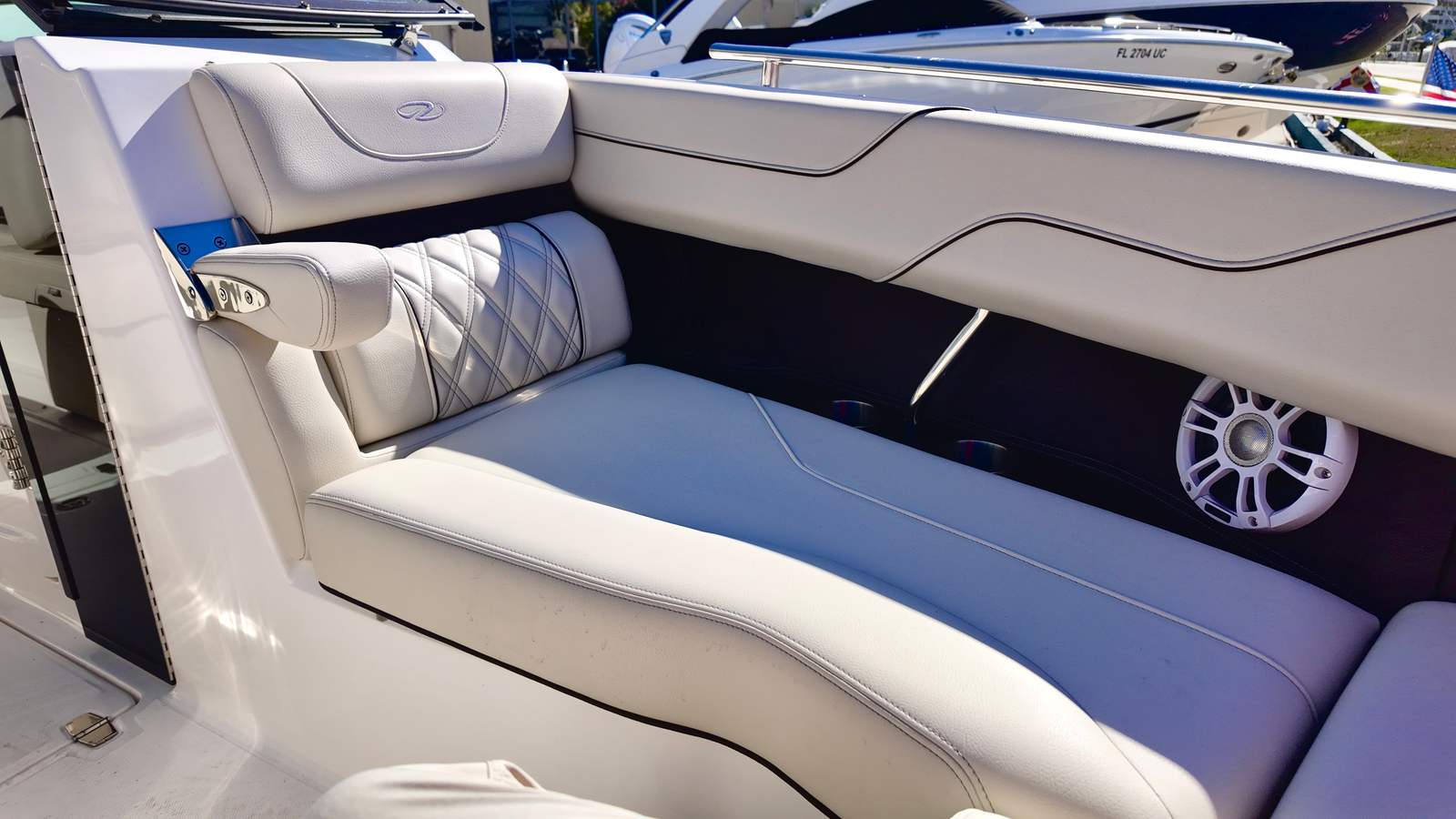At the heart of the Regal LX6 is a single Yamaha F350XSA2 engine, delivering an impressive 350 horsepower. This powerhouse ensures smooth acceleration, responsive handling, and reliable performance whether you’re cruising, towing water toys, or exploring new destinations. The engine’s advanced engineering provides optimal fuel efficiency, making every trip enjoyable and cost-effective. With the addition of trim tabs, you can easily adjust the boat’s attitude for a smoother ride, improved stability, and enhanced control in varying water conditions.