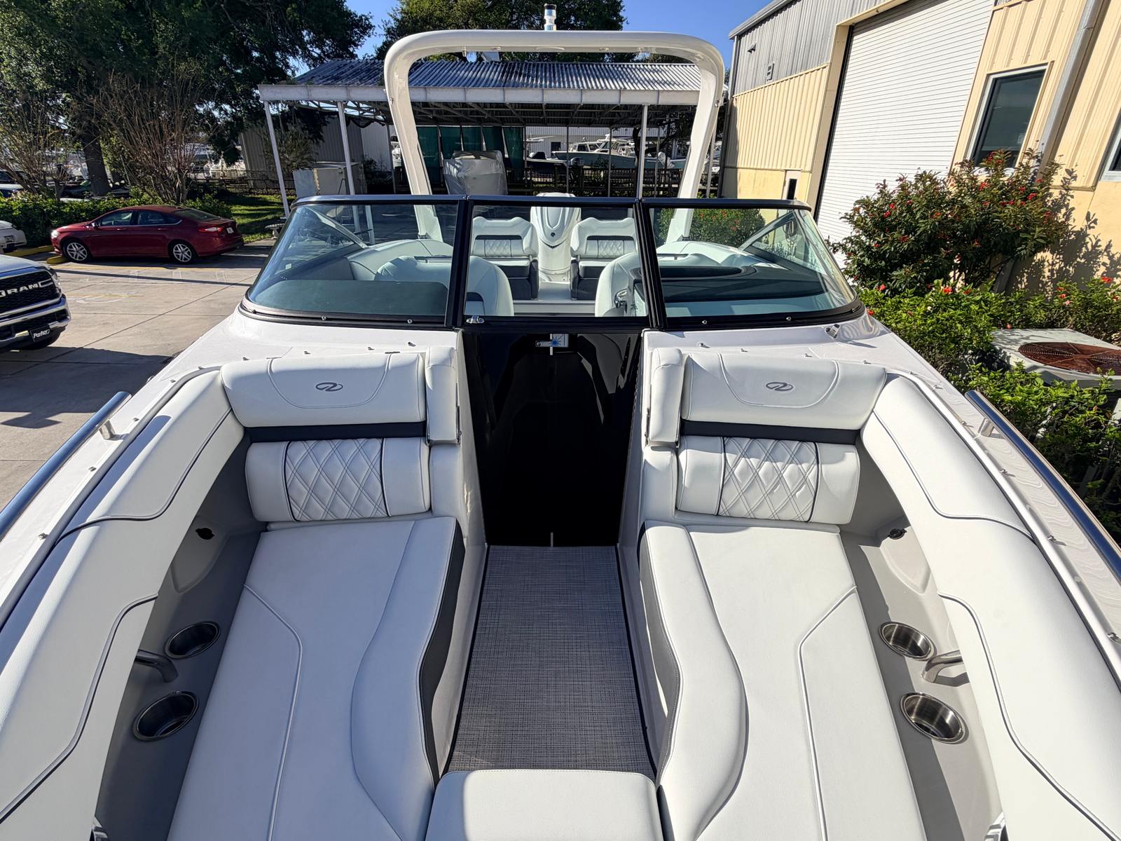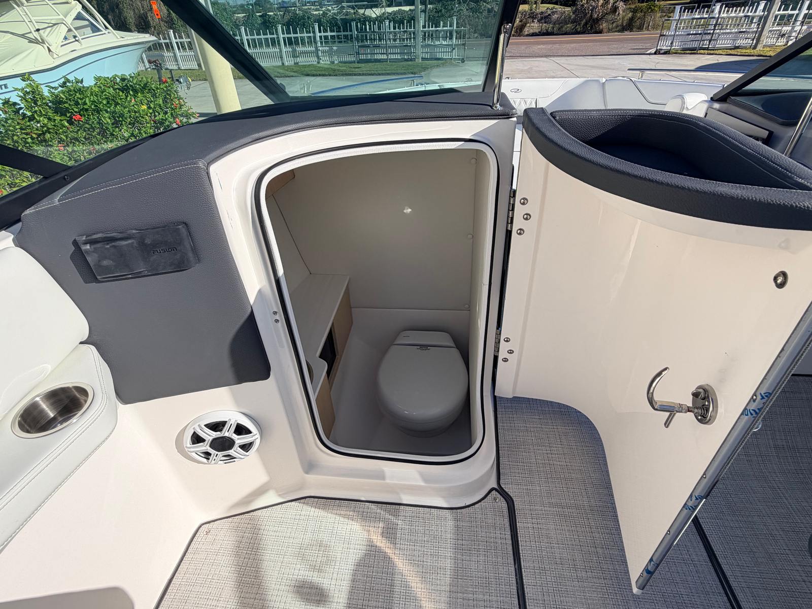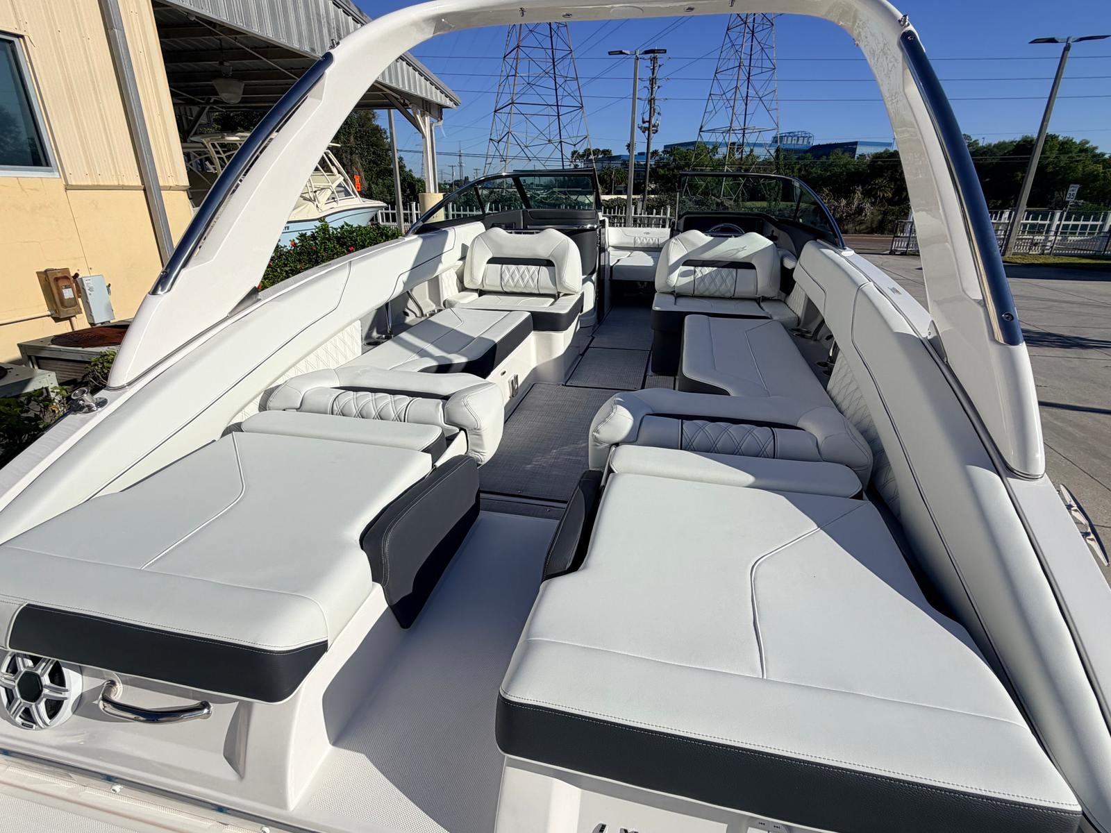 The Regal LX6 is as practical as it is beautiful. The dual battery system and charger mean you’ll always have reliable power, whether you’re running the stereo, navigation lights, or other electronics. The bow thruster makes docking a breeze, reducing stress and making it easy to handle the boat solo or with a small crew.The cockpit seagrass mat not only adds comfort but also makes cleaning up after a day on the water quick and simple. The bow and cockpit covers help protect your investment, reducing maintenance and ensuring your boat stays in top condition. With its manageable length of 26.25 feet, the LX6 is easy to trailer, store, and dock, making it a practical choice for both new and experienced boaters.