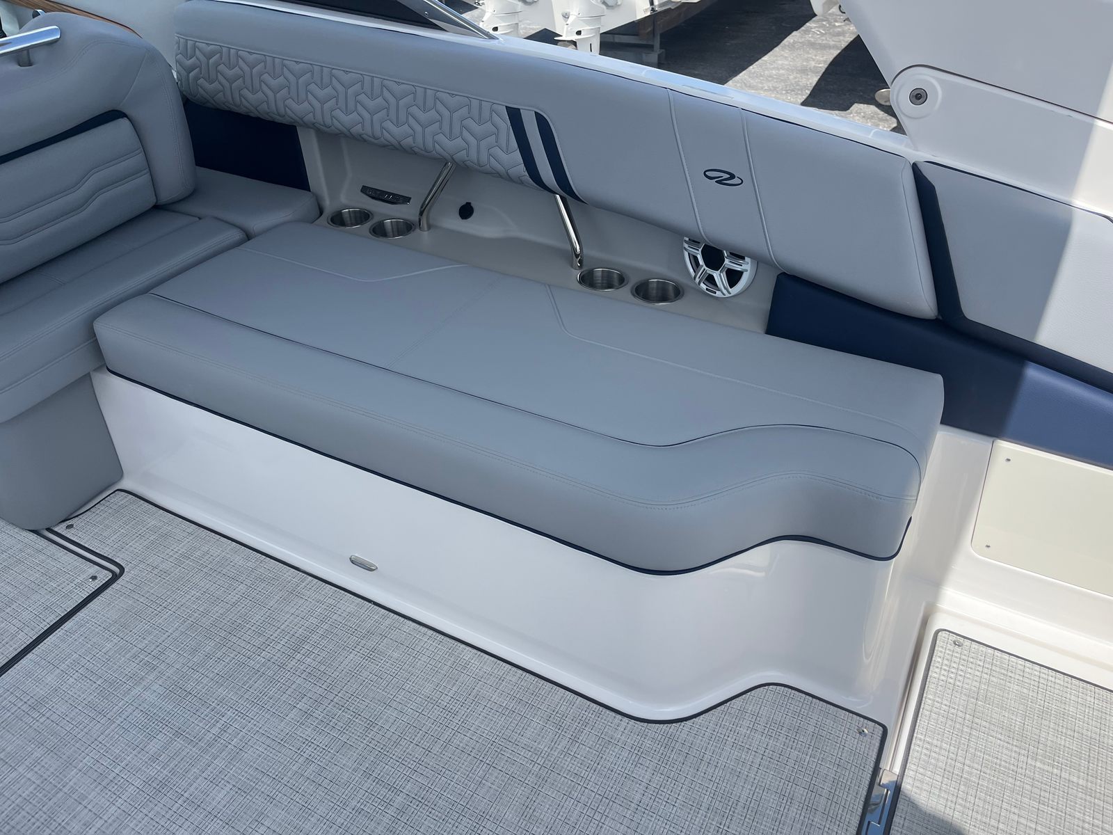 The 2026 Regal LX9 Ultimate is a showcase of premium craftsmanship and thoughtful amenities. The hull is finished in a striking Mediterranean Blue, complemented by a Steel Gray bootstripe and a Tahiti Beach White bottom color. The interior zones are elegantly appointed with Lunar Gray - Chil upholstery in Zones 1, 2, and 3, while Zones 4, 5, and 6 feature the rich tones of Mediterranean Blue - Chil and Mediterranean Blue. These color combinations create a sophisticated and inviting atmosphere, perfect for entertaining guests or relaxing with loved ones.For added convenience and protection, the LX9 Ultimate comes equipped with bow and cockpit covers, ensuring your boat stays clean and ready for your next adventure. Every detail, from the plush seating to the spacious layout, is designed to enhance your time on the water.