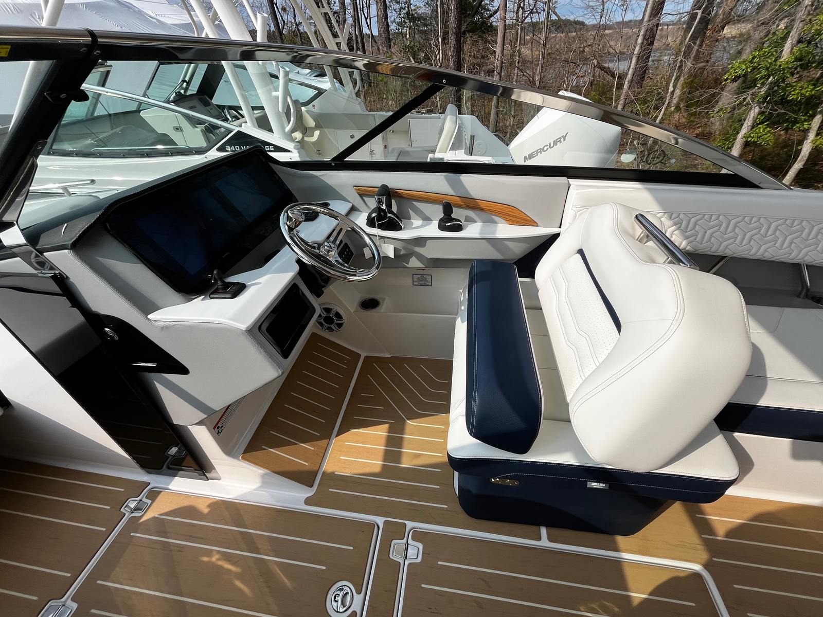 Hull Color – Tahiti Beach White with Mediterranean Blue Boot Stripe: A stunning, timeless color combination that radiates coastal sophistication.