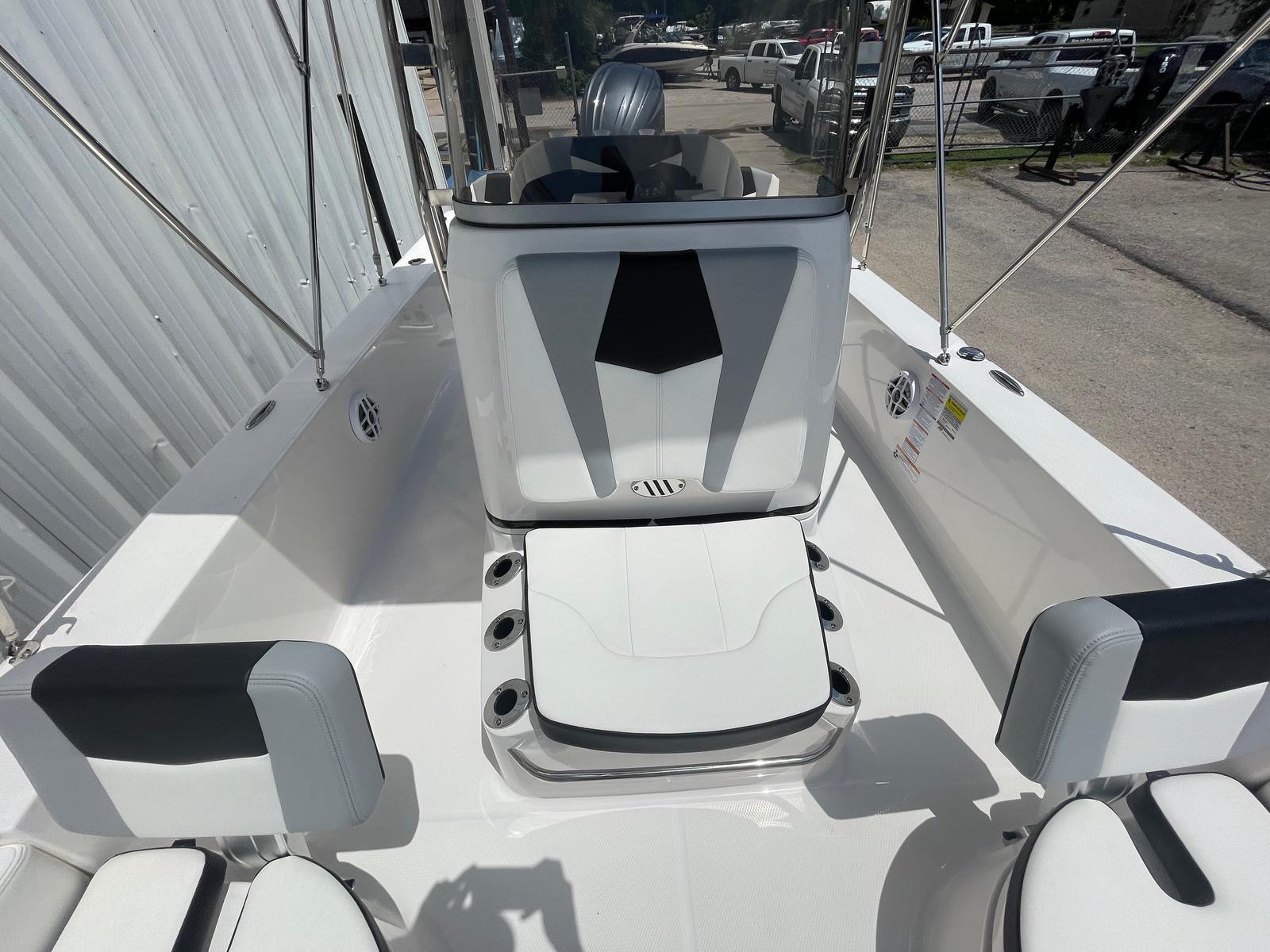 This Robalo 206 Cayman DLX is loaded with premium features designed to enhance your boating experience. The solid hull deepwater black gel coat not only looks stunning but also provides durability and protection against the elements. The cockpit interior in Harbor Black offers a comfortable and stylish environment for you and your guests, while the matching black canvas and bimini top with boot provide ample shade and protection from the sun.Navigation and electronics are a breeze with the Simrad NSS7 EVO3 Chartplotter/Multifunction display, giving you access to advanced mapping, fish-finding, and system monitoring at your fingertips. The dual battery system ensures reliable power for all your onboard electronics and accessories, so you can focus on the fun without worry.Comfort and convenience are further enhanced by the Seadek helm mat, which provides a cushioned, non-slip surface at the helm, and the fold-down console windshield and grab rail, offering protection from wind and spray while making it easy to access the bow. The white powdercoated leaning post adds both style and support, making long days on the water more enjoyable.