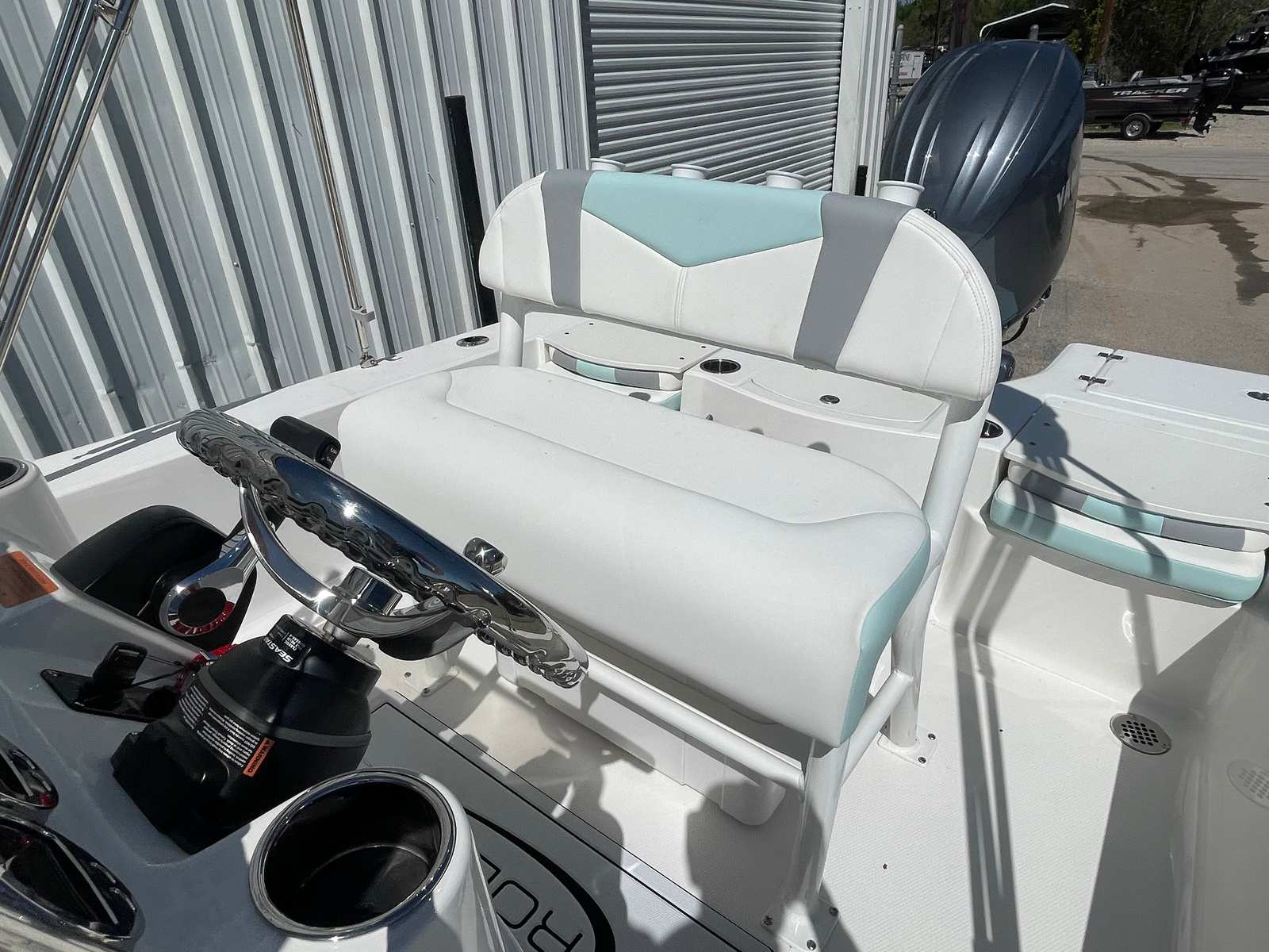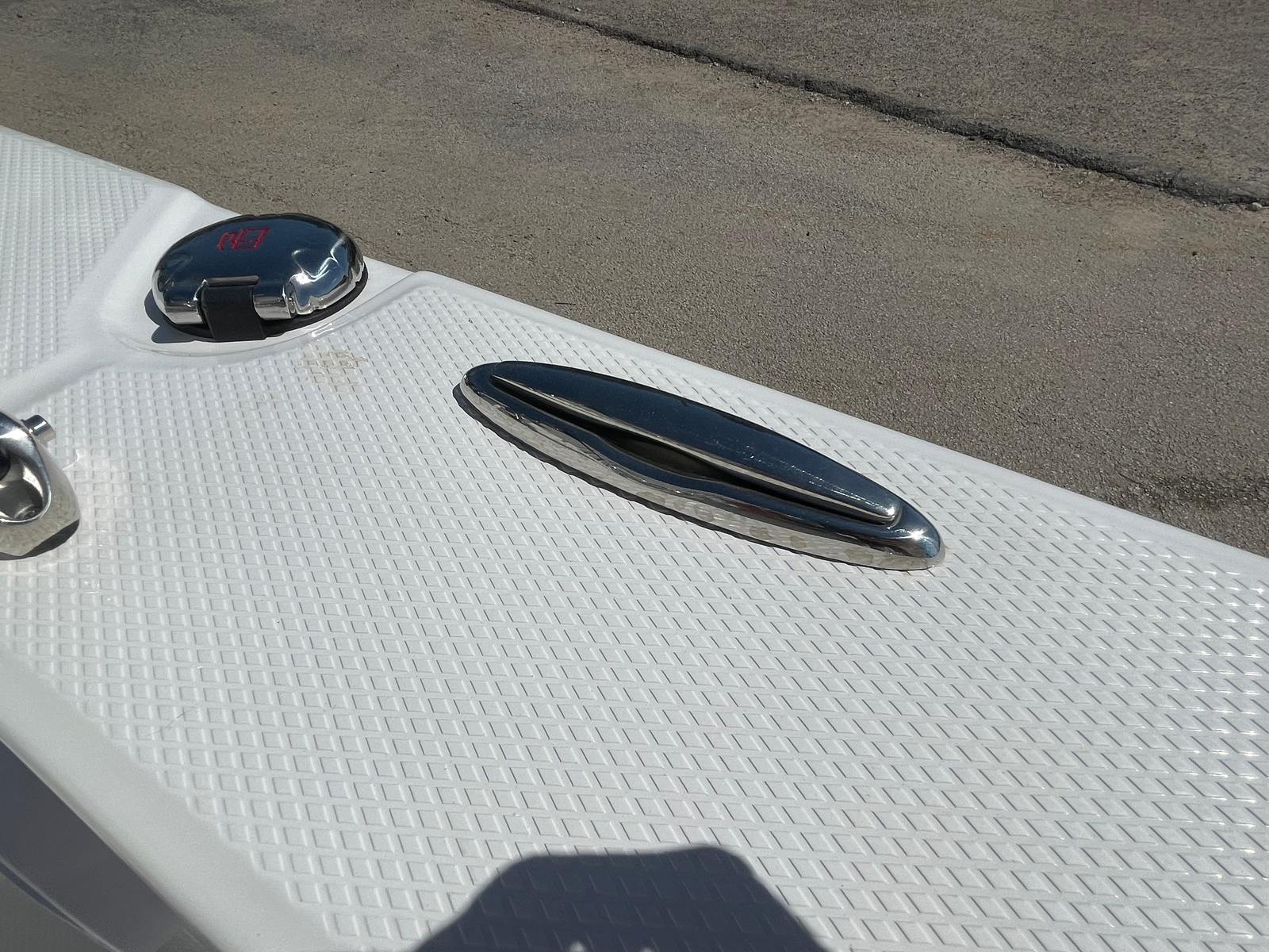 Under the hood, the Robalo 206 Cayman DLX is powered by a robust Yamaha Four Stroke F150XC engine, delivering an impressive 150 horsepower. This single-engine setup provides ample power for swift acceleration and effortless maneuvering, while the integrated hydraulic steering ensures precise control, whether you're navigating tight turns or cruising at high speeds. The Yamaha F150XC is renowned for its reliability and efficiency, making this Robalo boat for sale a dependable choice for all your boating adventures.