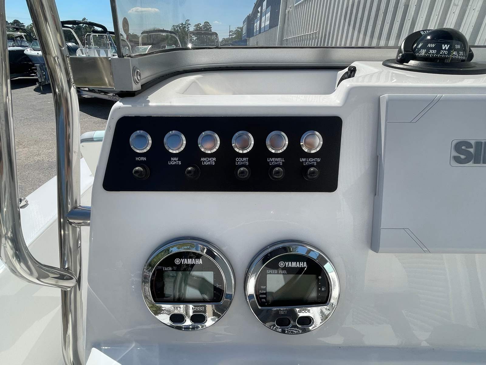 This bay boat is packed with special features that set it apart from the competition. The solid hull is finished with a stunning Sea Foam Green gel coat, providing durability and a sleek appearance. The cockpit interior complements the exterior with a Harbor Seafoam Green color scheme, creating a harmonious and inviting atmosphere. The black canvas color and bimini top with boot offer both style and protection from the elements, ensuring your comfort no matter the weather.